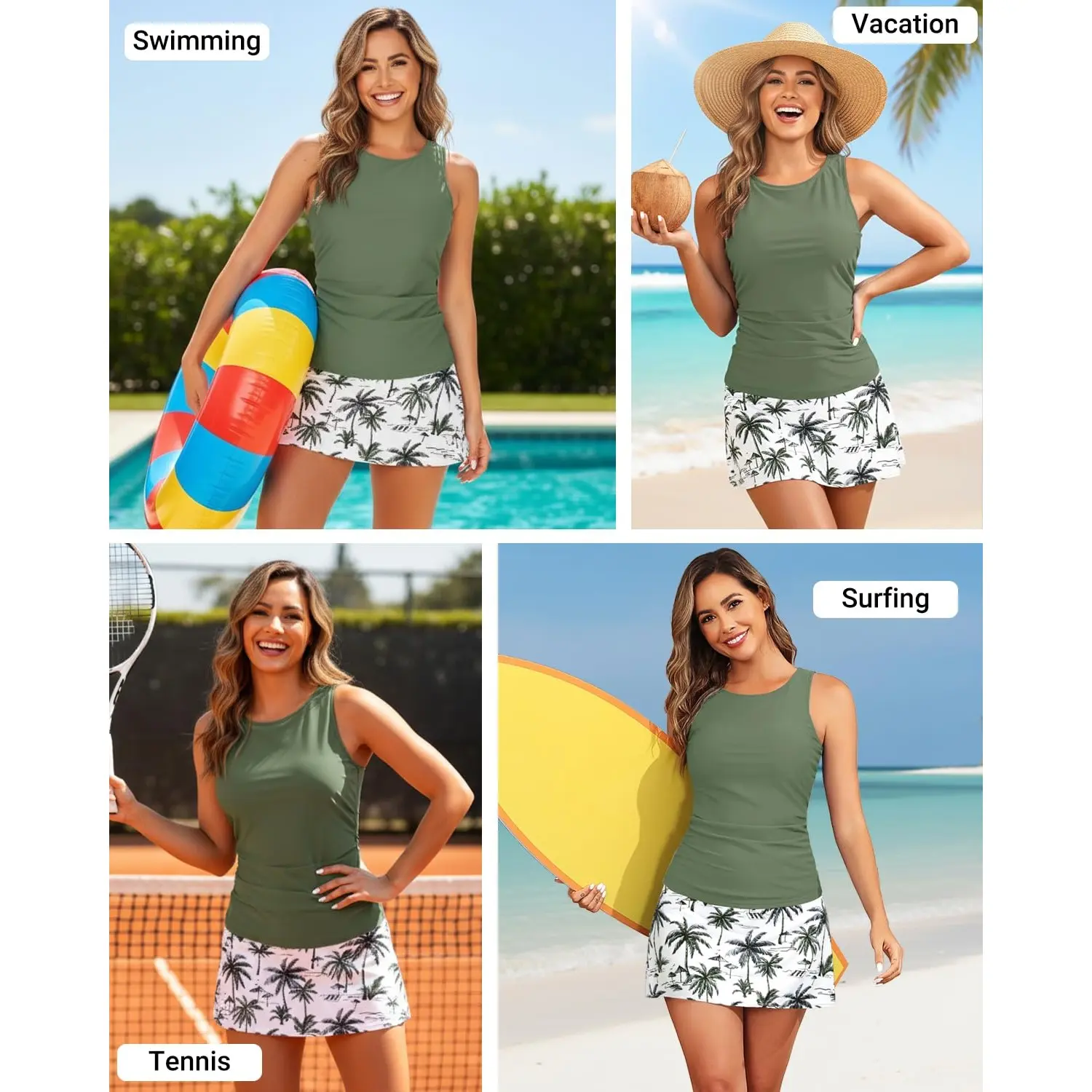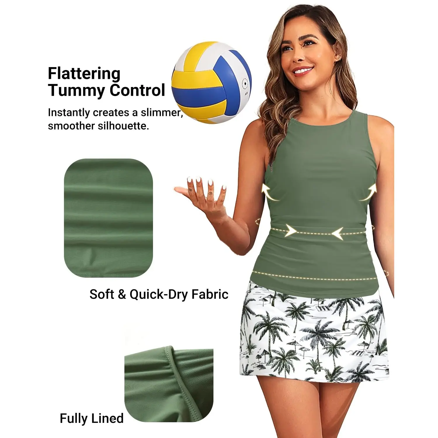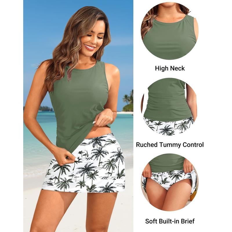 ·Tankini with Skirt: Designed with a built-in brief skirt bottom for effortless movement, this tankini is fully lined to ensure opaque coverage, making it ideal for girls, teens, juniors, ladies, and maternity wear.