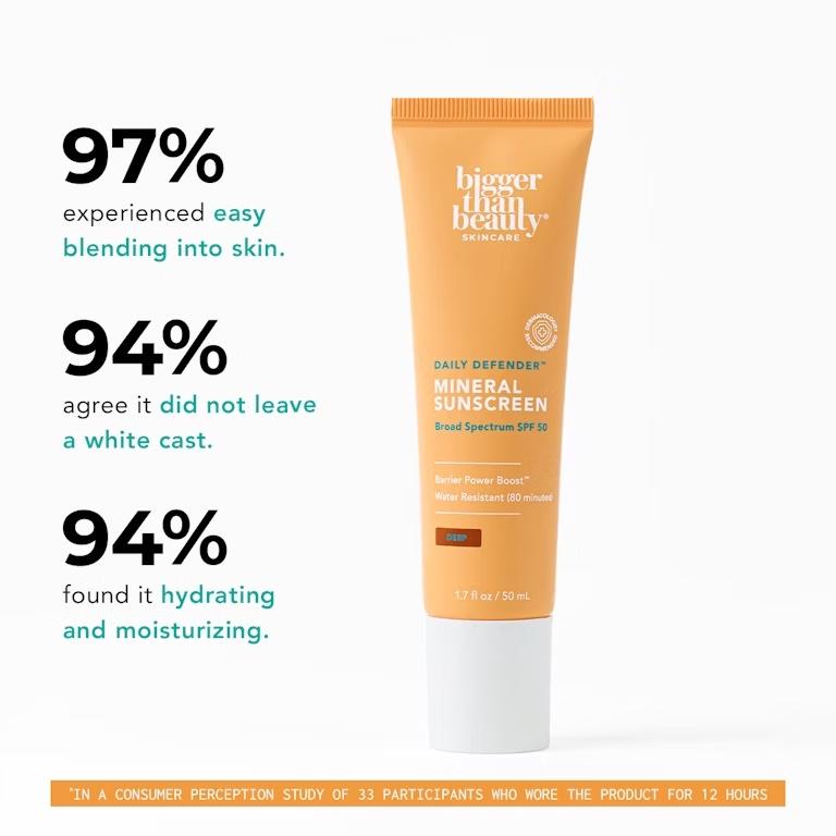 Daily Defender Mineral Sunscreen Broad Spectrum has a light but substantial consistency that feels great on my skin and provides substantial sunscreen coverage. I live at the beach and rely on th cream to protect my skin.