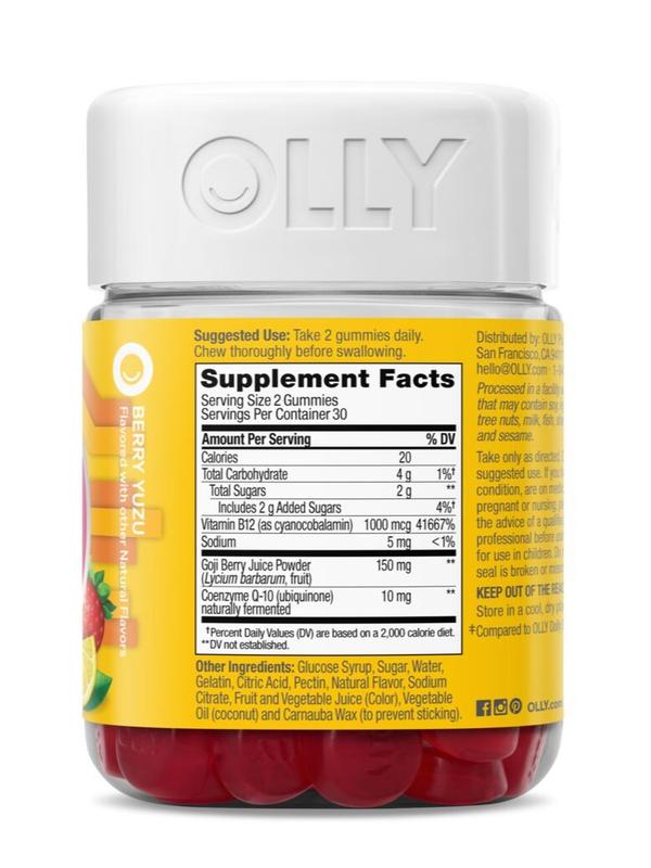 5. OLLY Extra Strength Daily Energy Gummy, Caffeine Free, 1000mcg Vitamin B12, CoQ10, Goji Berry, Adult Chewable Supplement, Berry Yuzu Flavor - 60 Gummies