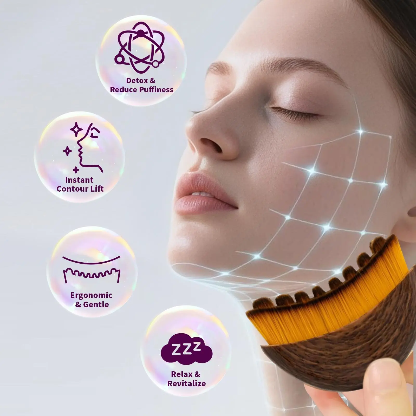 ·Ergonomic designSoft bristles conform to facial contours for optimal massage effect.