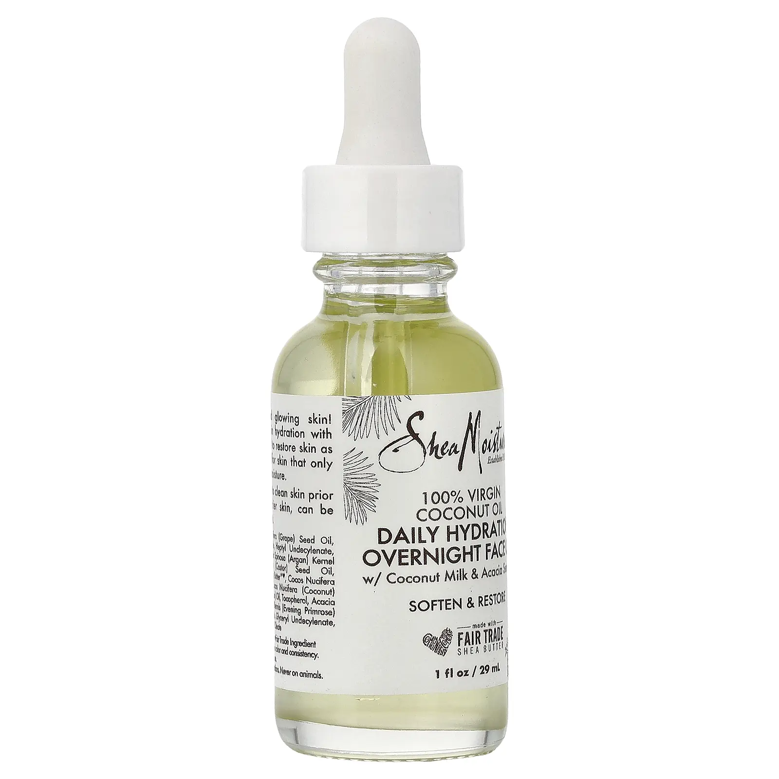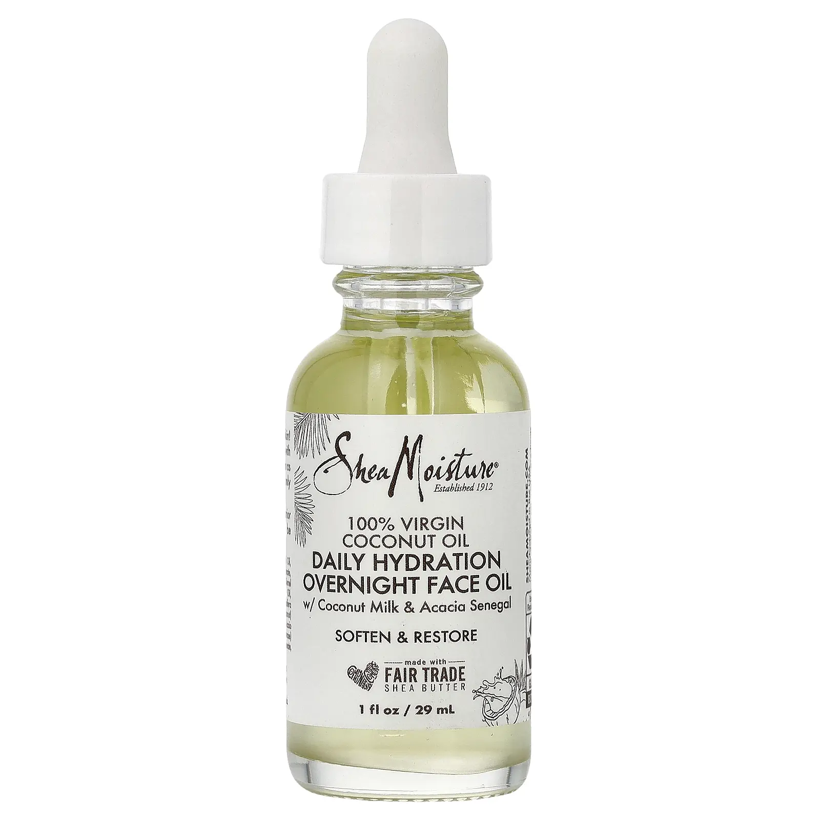 SheaMoisture 100% Virgin Coconut Oil, Daily Hydration Overnight Face Oil, 1 fl oz (29 ml)