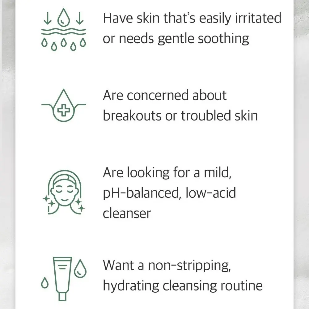 Centella Cleansing Foam (renewed): Low pH cleansing foam for soothing and moisturizing the skin while providing complete care of pores and dead skin cells. Its mild formula has been improved to additionally help with skin trouble.