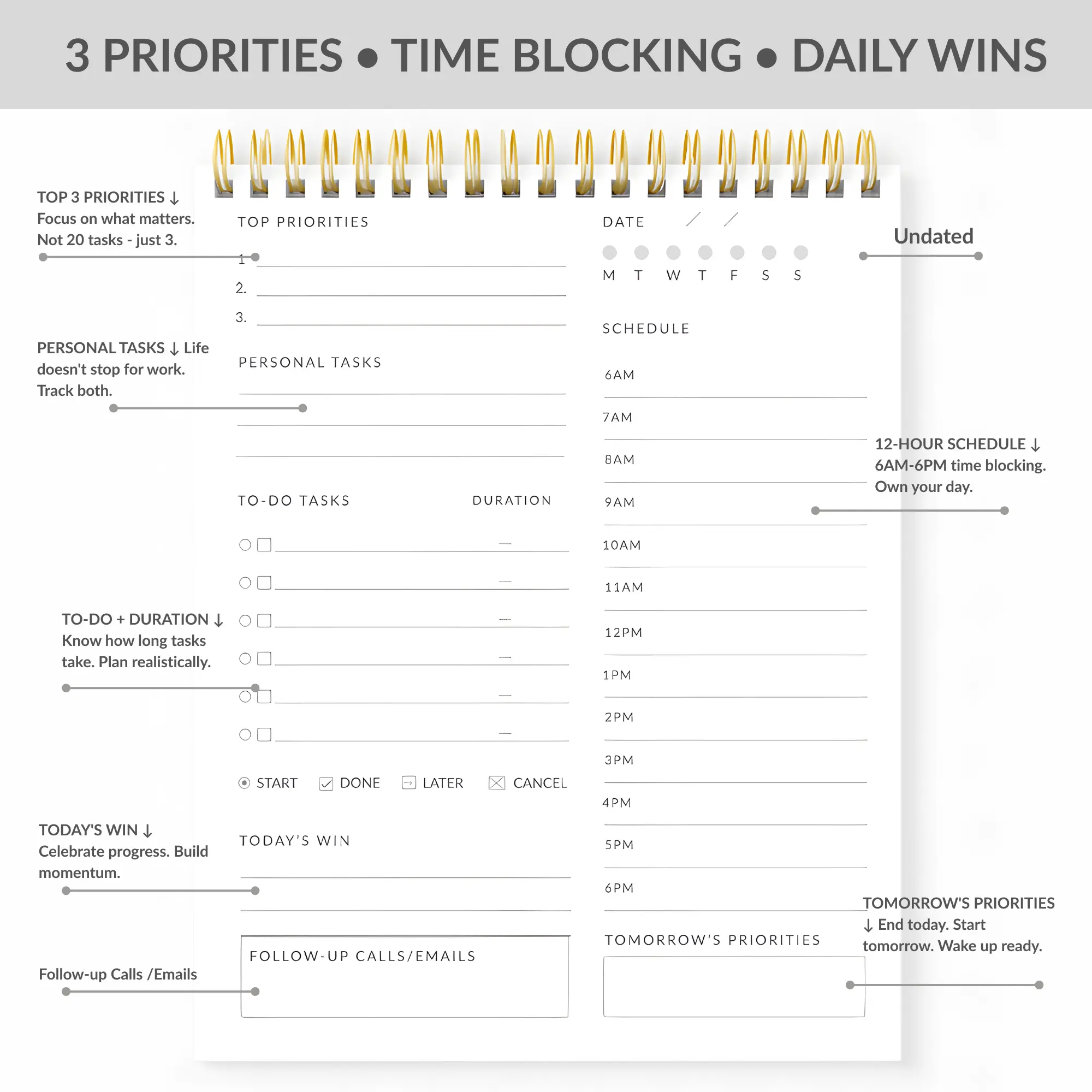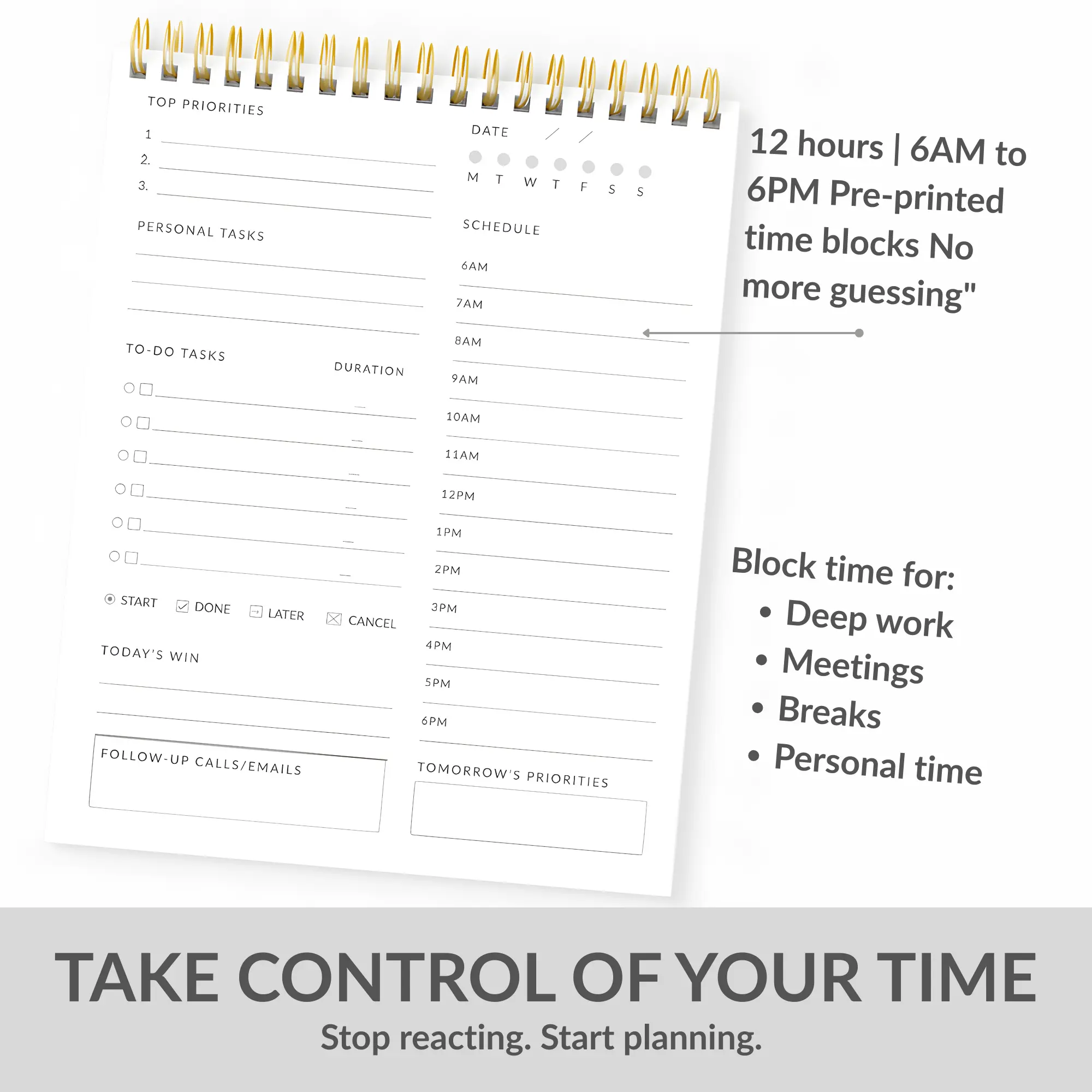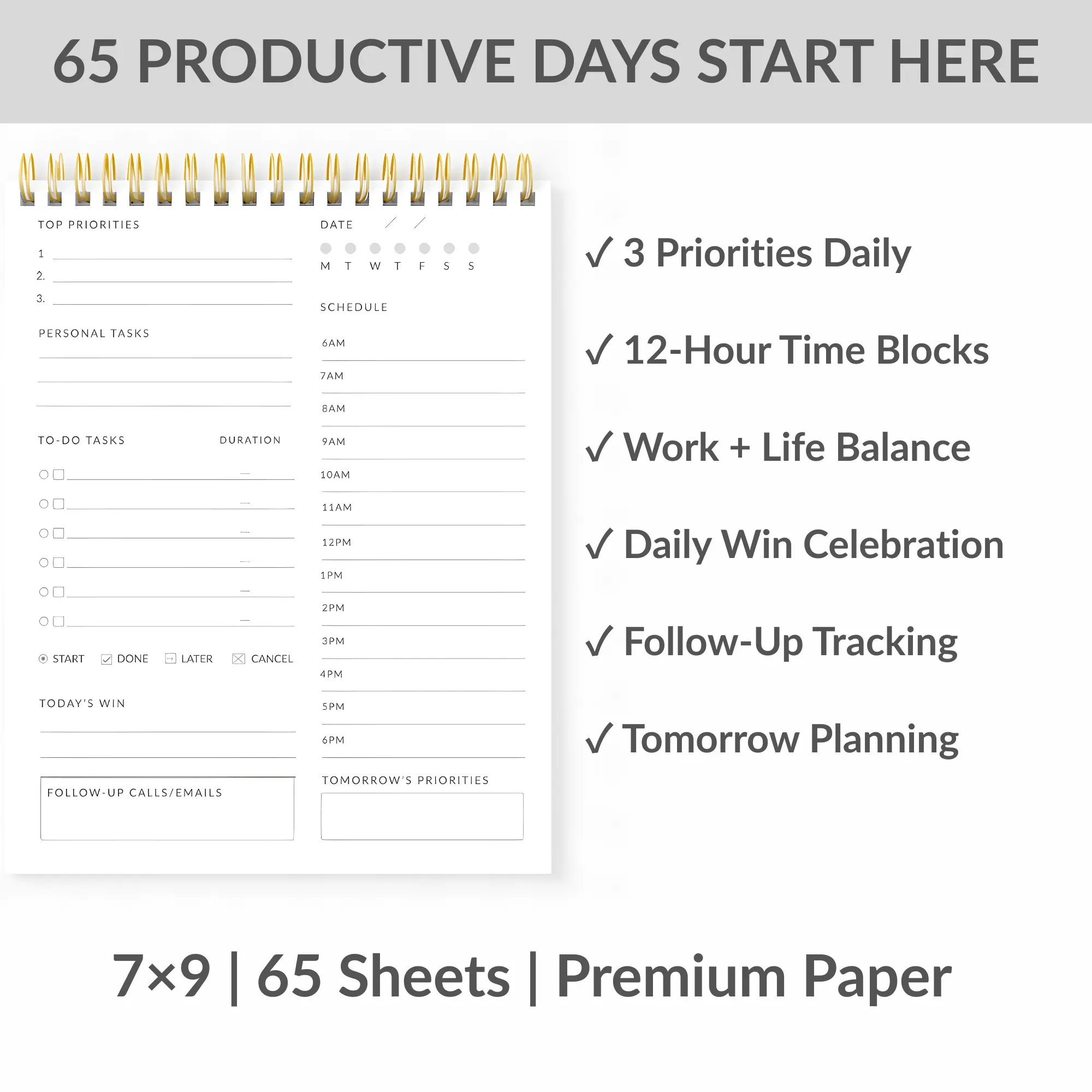 ·65 Sheets: This notepad offers 65 sheets for your daily planning needs. Perfect for organizing your work schedule and time blocking. 📝