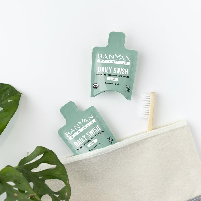 Holding oil in the mouth and swishing or pulling it through the teeth is an excellent way to support oral health and hygiene. Infused with cleansing herbs, including the renowned formula triphala, and flavored with peppermint and spearmint, Daily Swish leaves your mouth feeling clean and fresh.