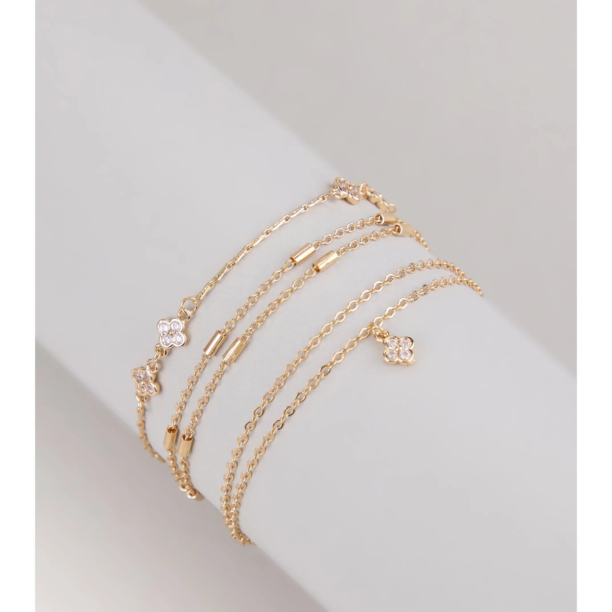 Delicate with just the right sparkle, this layered bracelet set stacks slim chains with tiny crystal flower charms for that effortlessly pretty vibe. Perfect for dressing up your everyday 'fits or adding a hint of glam to night-out looks.