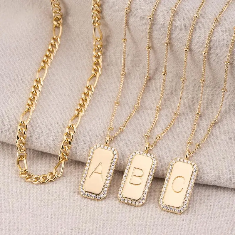 【Material】Initial necklace - necklace engraved with alphabets (from A to Z), 14k gold plated, layered pendant necklace, minimalist style, small heart pendant necklace.