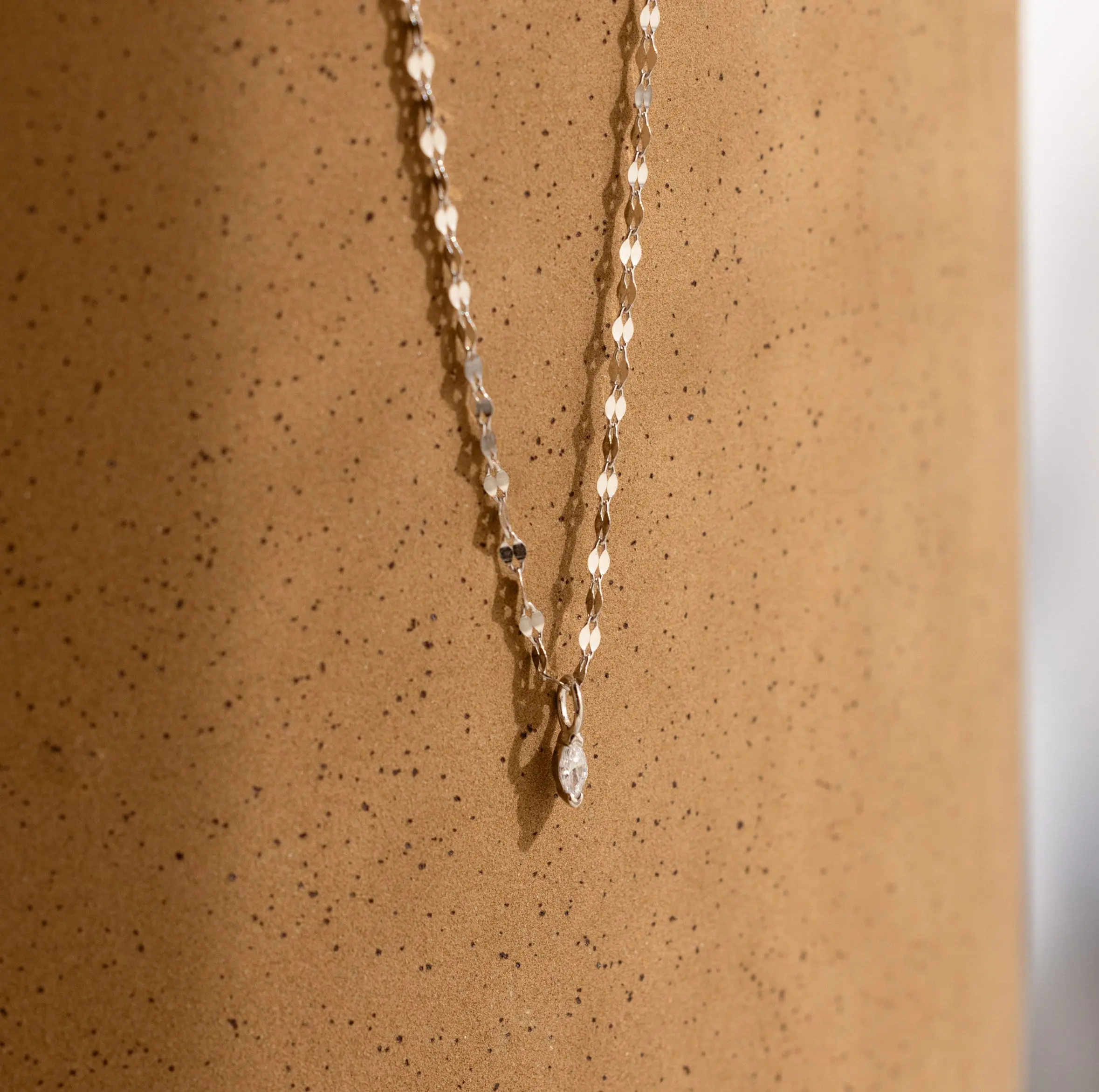 Elevate your style with our Dainty Marquise Pendant Necklace on a Mirror Twist Chain for a chic, understated look. It's crafted with delicate marquise-cut diamonds, perfect for adding a touch of sparkle to your everyday outfits ✨