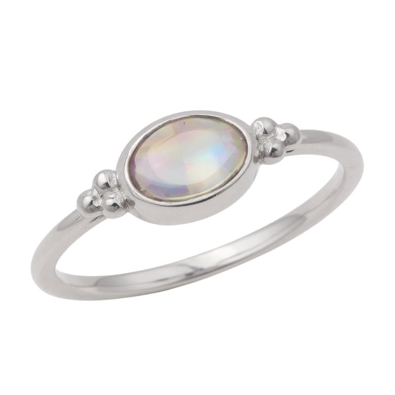 Sterling Silver Dainty Oval Rainbow Moonstone Ring