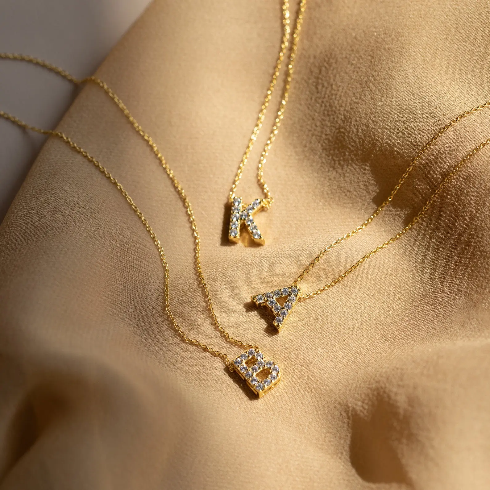 Style A) Dainty Pave Letter Necklace