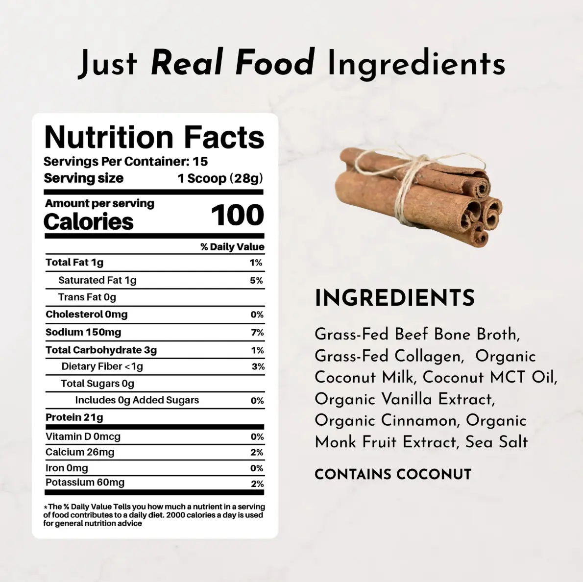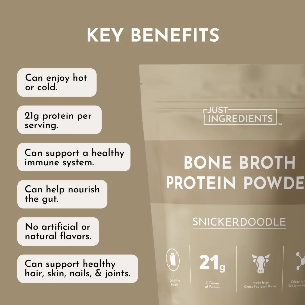 ·Collagen for Skin & Joints: A blend of grass-fed bone broth and added grass-fed collagen, to support healthy skin, hair, nails, and joints.