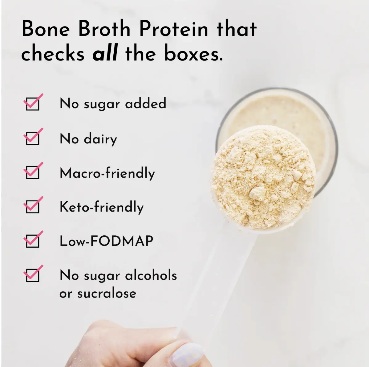·Contains Amino Acids Bone broth protein delivers a wide range of amino acids. It’s especially a good source of glycine and glutamine, both known for their supportive roles in the body.*