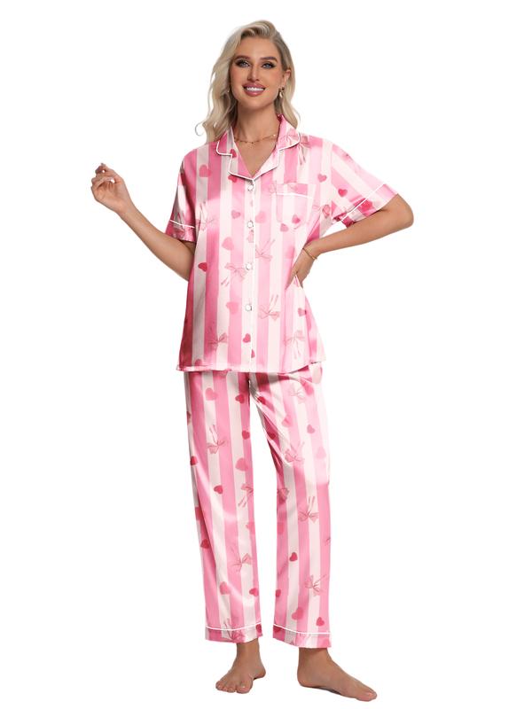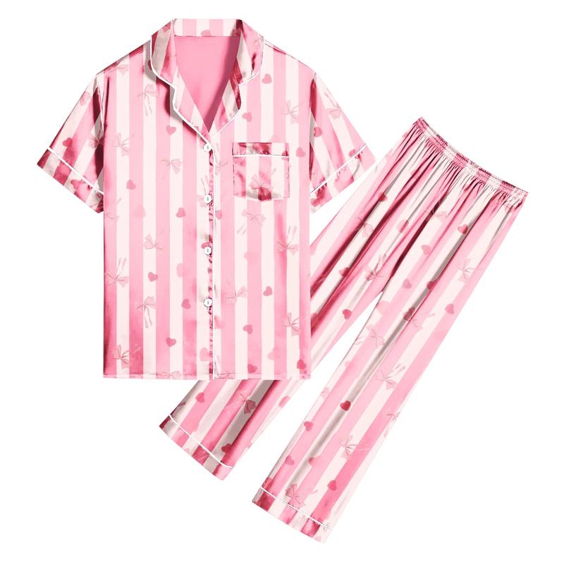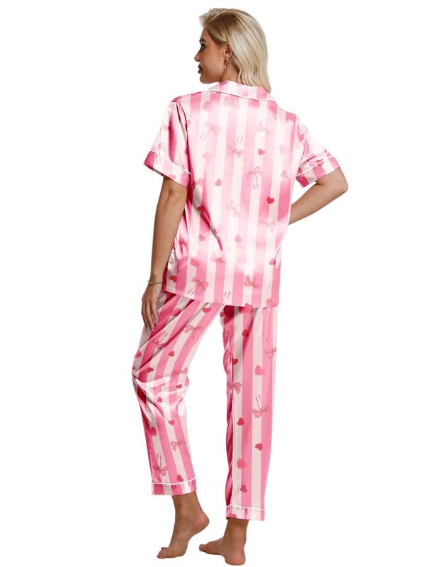 Soft Satin Pajama Set: Made of premium 95% Polyester, 5% Spandex silk satin, the pj set women is lightweight, breathable and skin-friendly, just like wrapped in a cloud, helping you have a sound sleep.