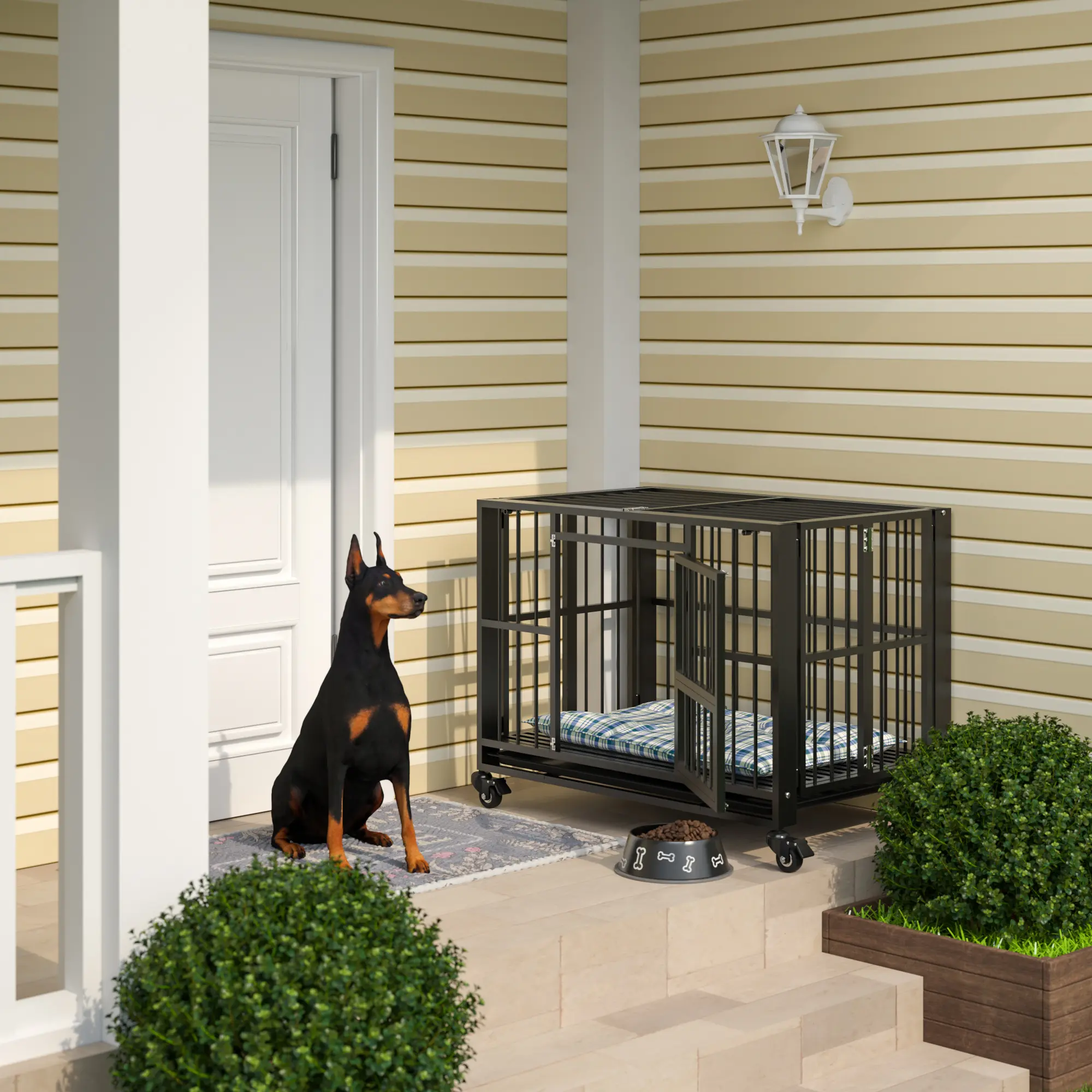 ·Selected Materials :Crafted from 20-gauge steel and fortified with 0.6-inch diameter steel tubes, this 38-inch dog crate is substantially more robust than traditional wire cages, ensuring a secure haven even for the most robust and powerful canine companions.