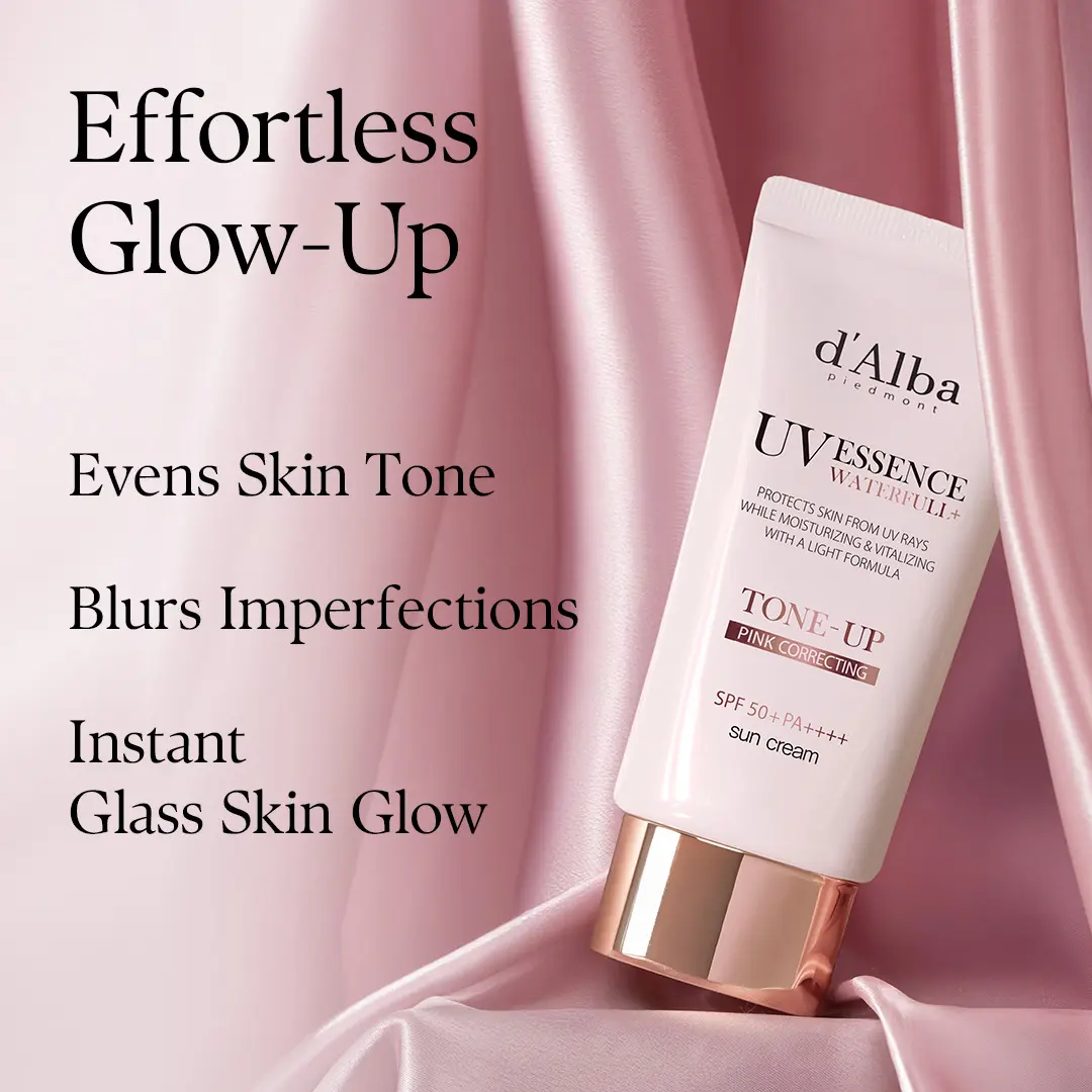 ·ALL-DAY HYDRATION + NATURAL TONE-UP — A blend of Aqua-rich essence and pink glow-up technology, providing all-day moisture with no greasy feel, leaving a natural radiance.
