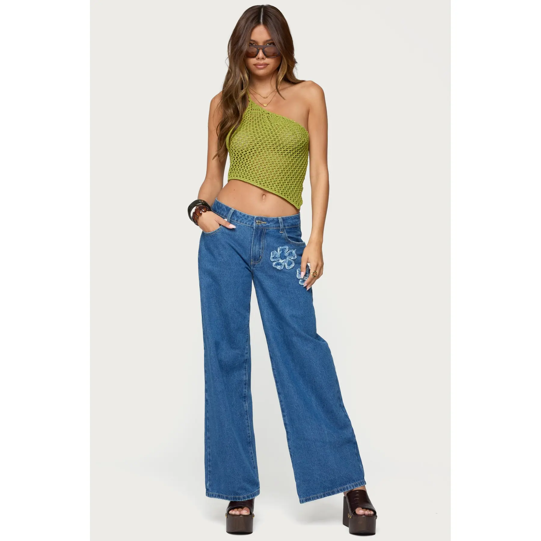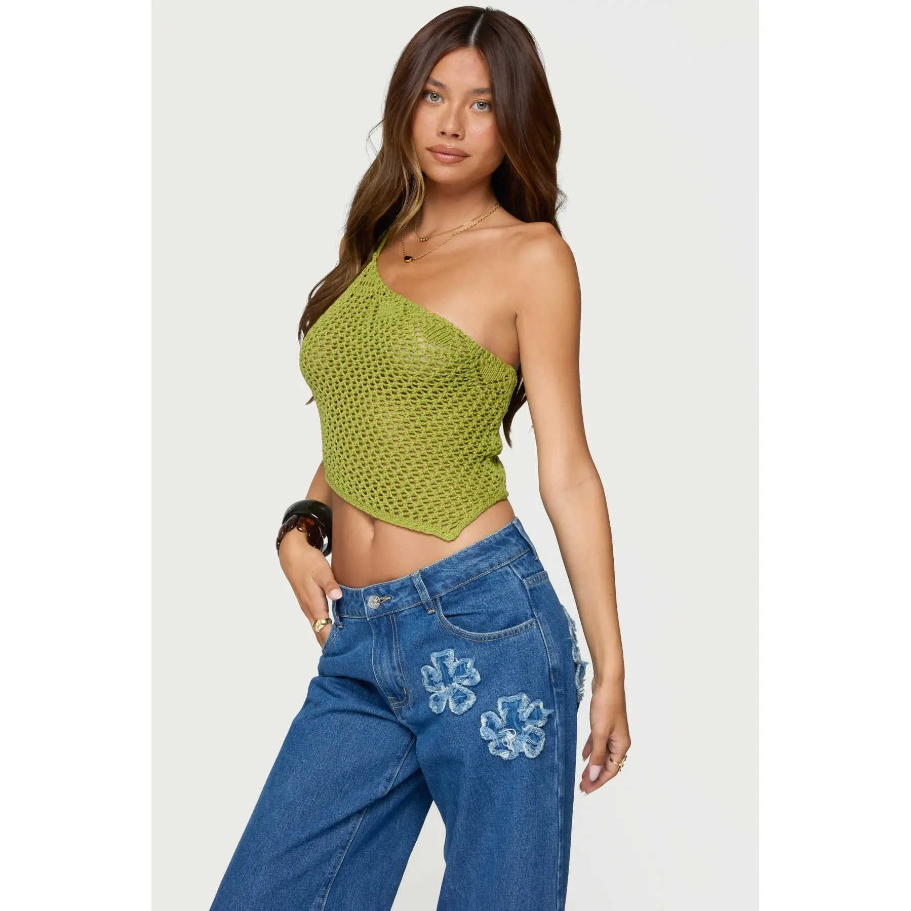 5. Daley Asymmetric One Shoulder Crochet Top