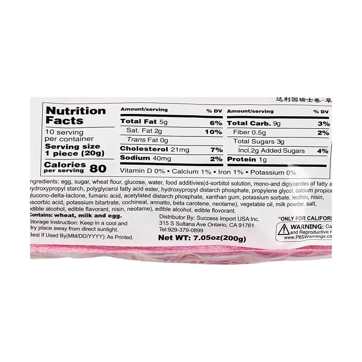 5. Daliyuan Swiss Roll Strawberry Cream Cake Rolls - 10 Count (200g) - Soft Breakfast Pastry & Afternoon Tea Snack