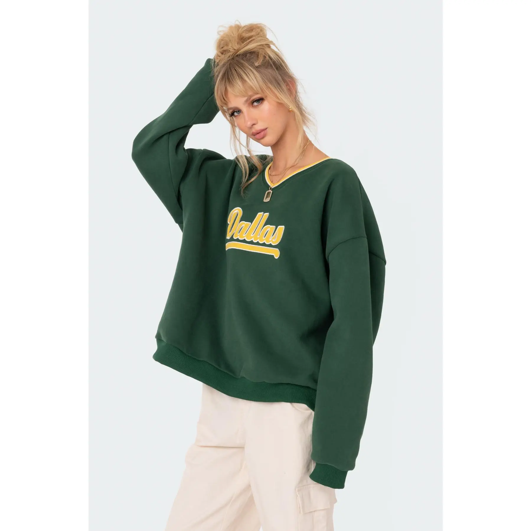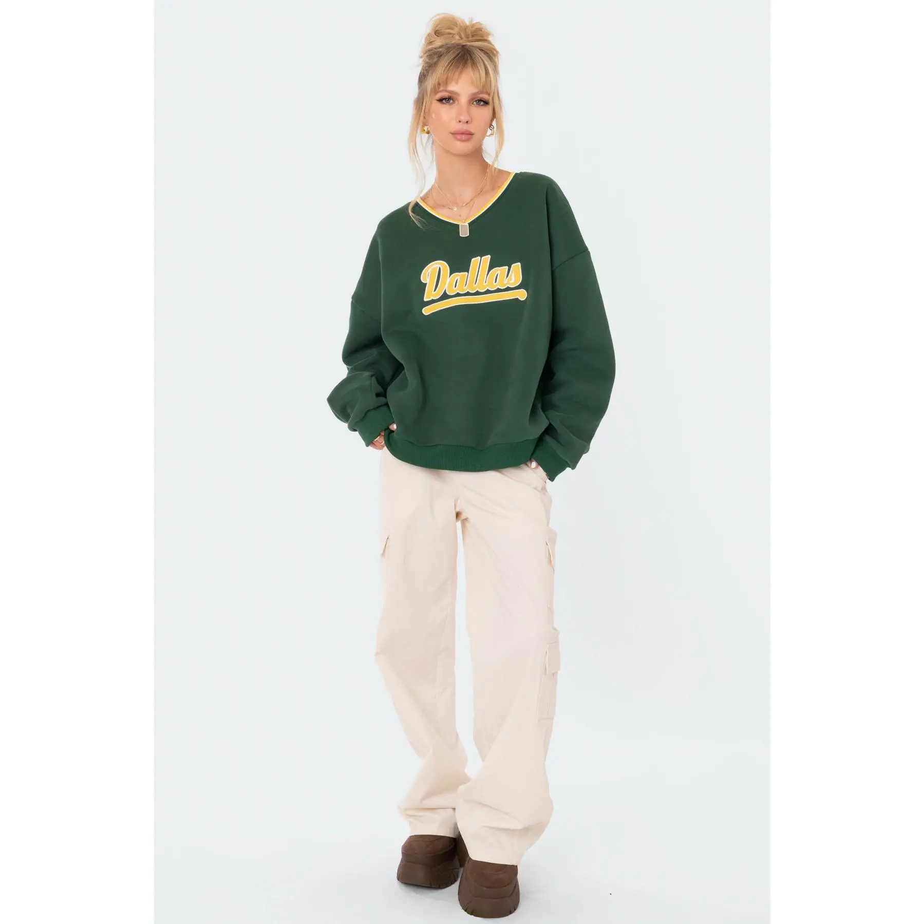 will be wearing this sweatshirt from @Edikted allll fall 💚💛 #sweatshirt #dallas #texas #fallfashion #outfitinspo