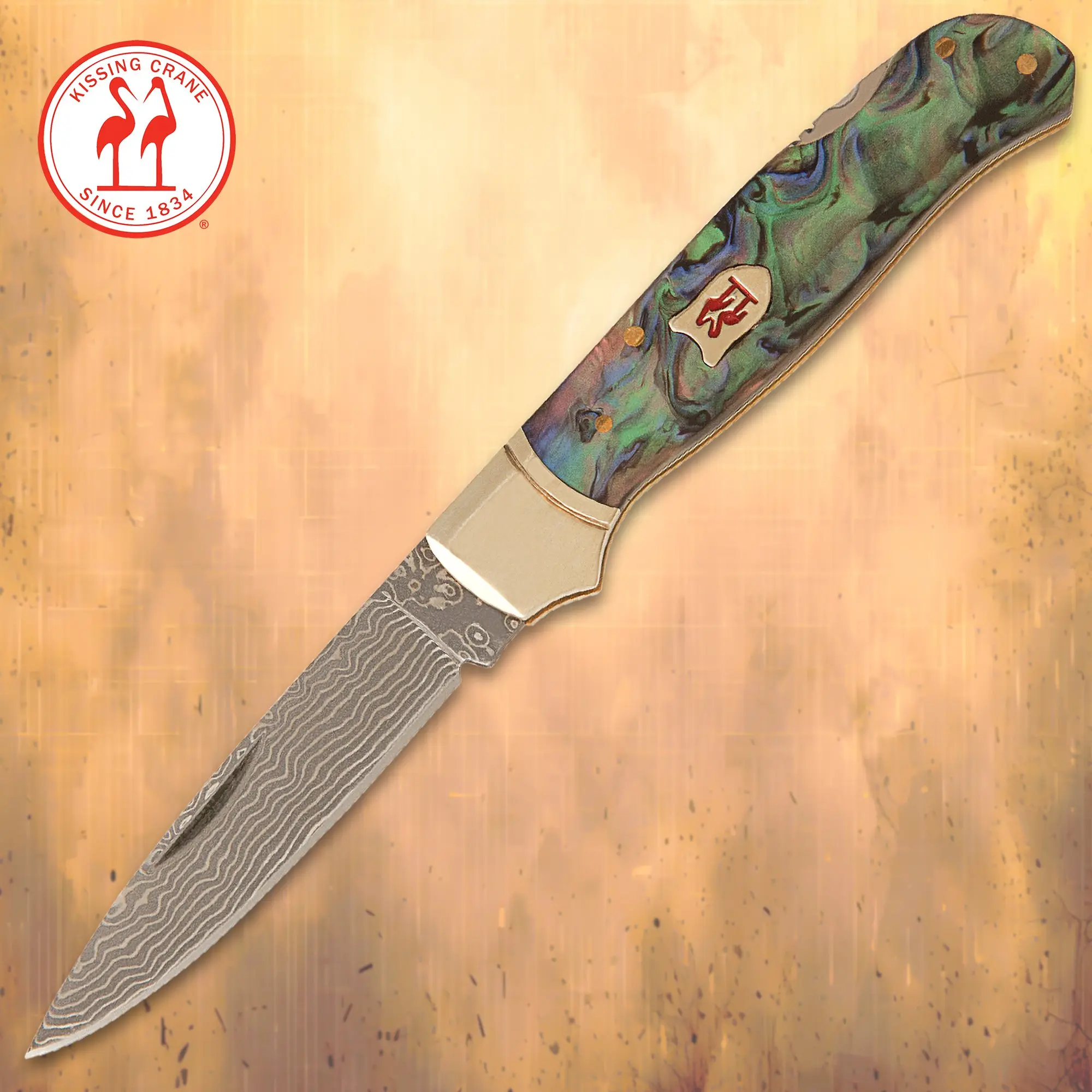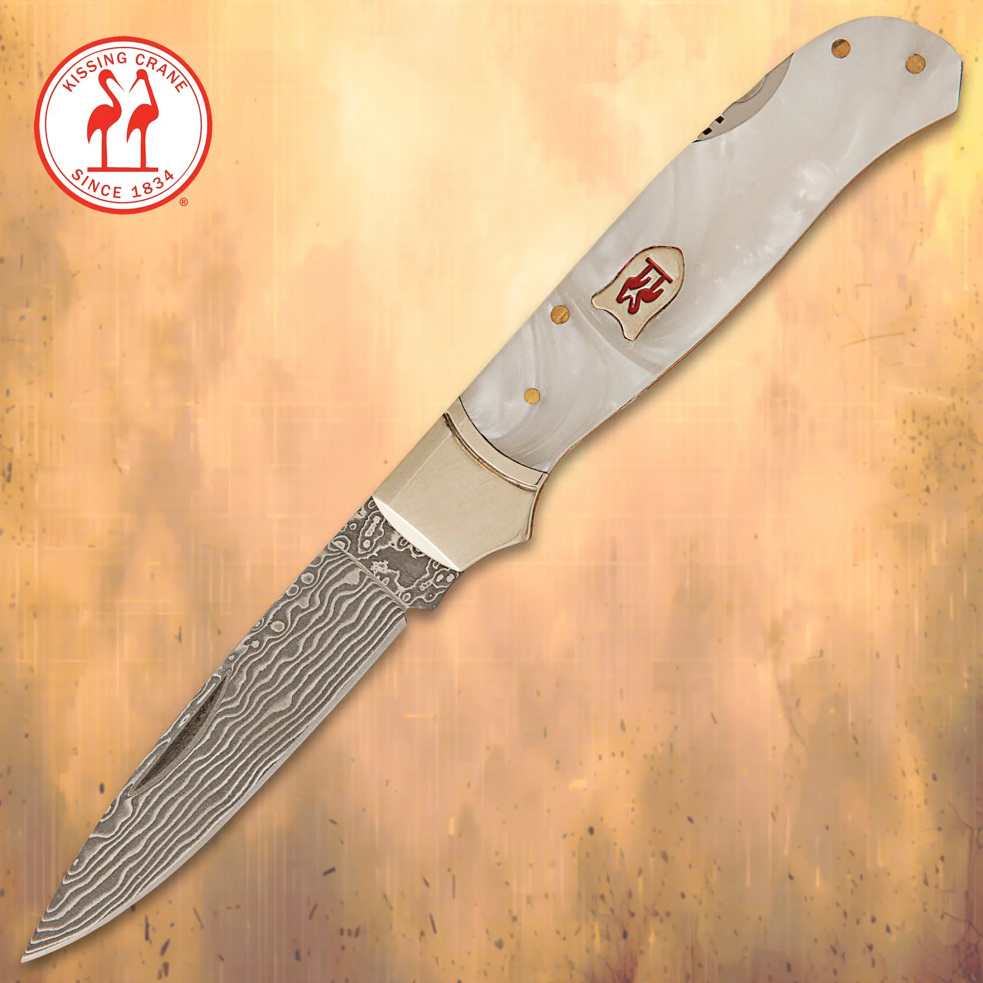 Kissing Crane Limited Lockback Imitation Pearl Damascus