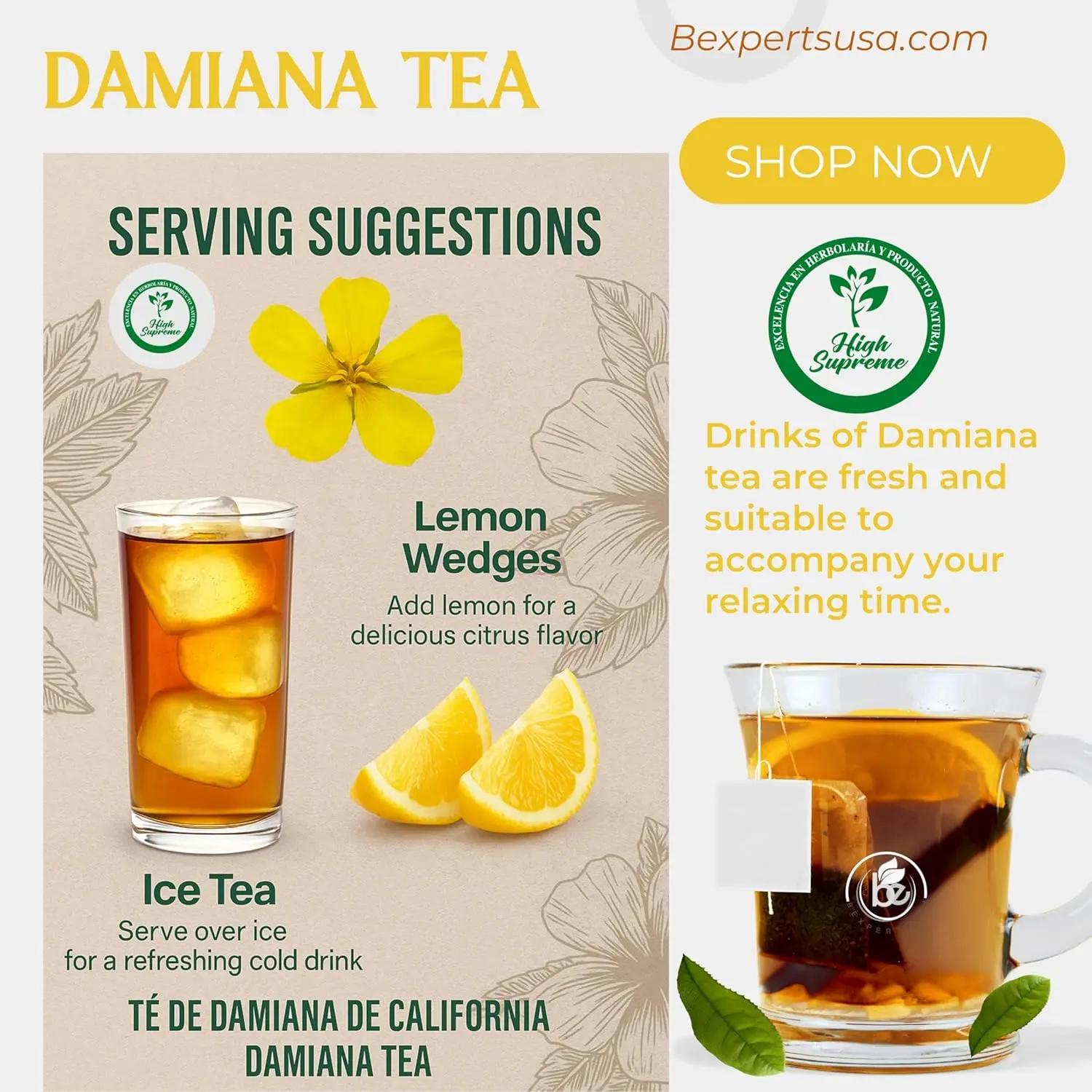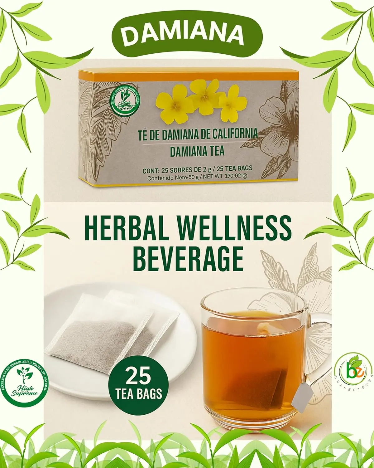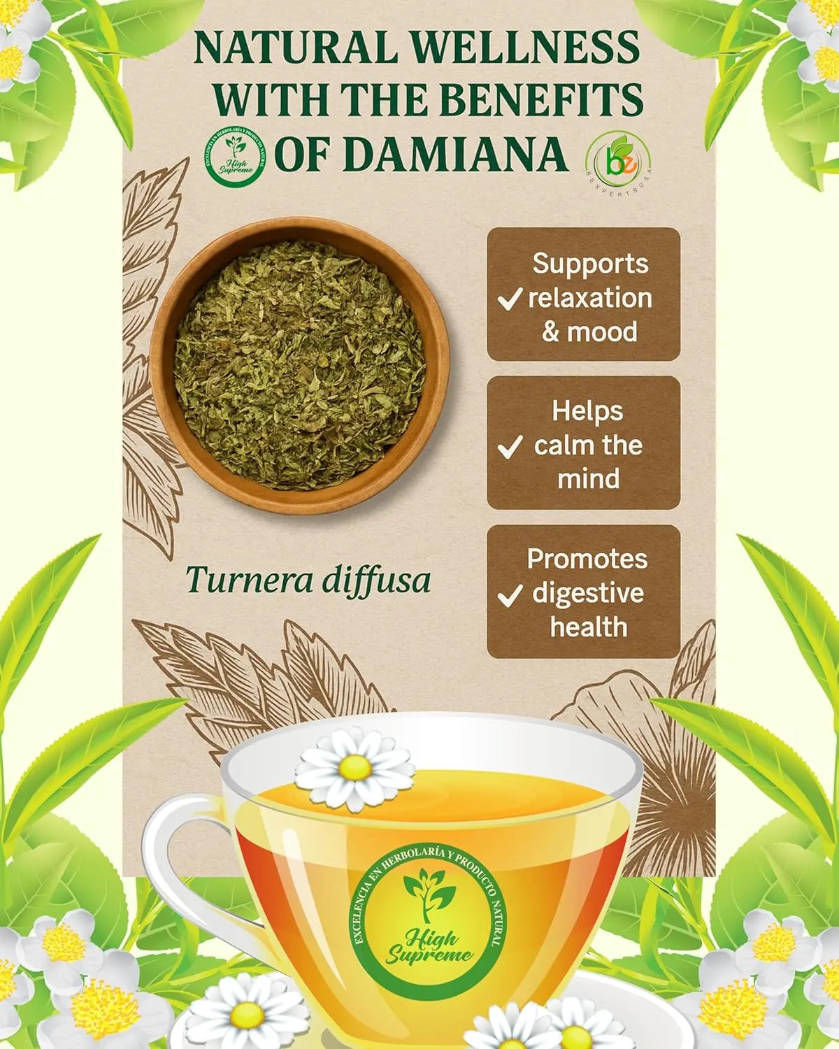 Dive into the tradition of Damiana Herbal Tea, crafted from 100% Turnera diffusa.