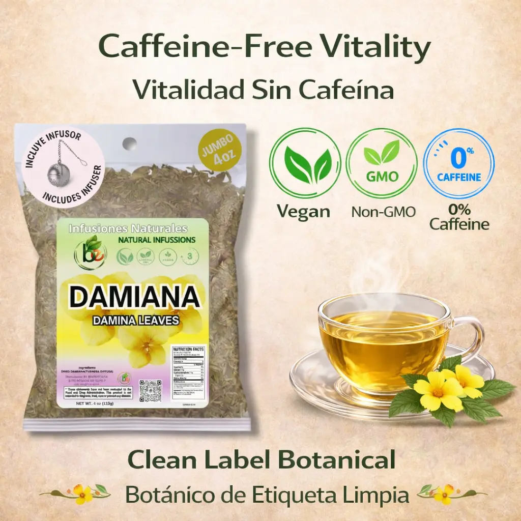 COMPLETE BREWING SET | SET DE INFUSIÓN COMPLETO —Includes 4 oz of premium loose-leaf Damiana and a high-quality stainless steel tea infuser.Everything you need for the perfect, mess-free botanical experience./Incluye 4 oz de Damiana premium en hoja suelta y un infusor de acero inoxidable de alta calidad.Todo lo que necesita para una experiencia botánica perfecta y sin complicaciones.