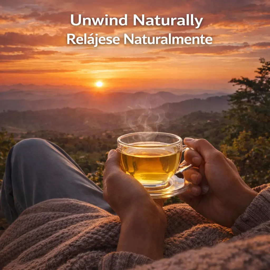 CAFFEINE-FREE RELAXATION | RELAJACIÓN SIN CAFEÍNA —Enjoy the smooth, slightly sweet, and earthy flavor any time of day or night. Naturally caffeine-free, 100% Vegan, and Non-GMO for a clean lifestyle. /Disfrute de su sabor suave, ligeramente dulce y terroso a cualquier hora. Naturalmente sin cafeína, 100% vegano y sin OGM.