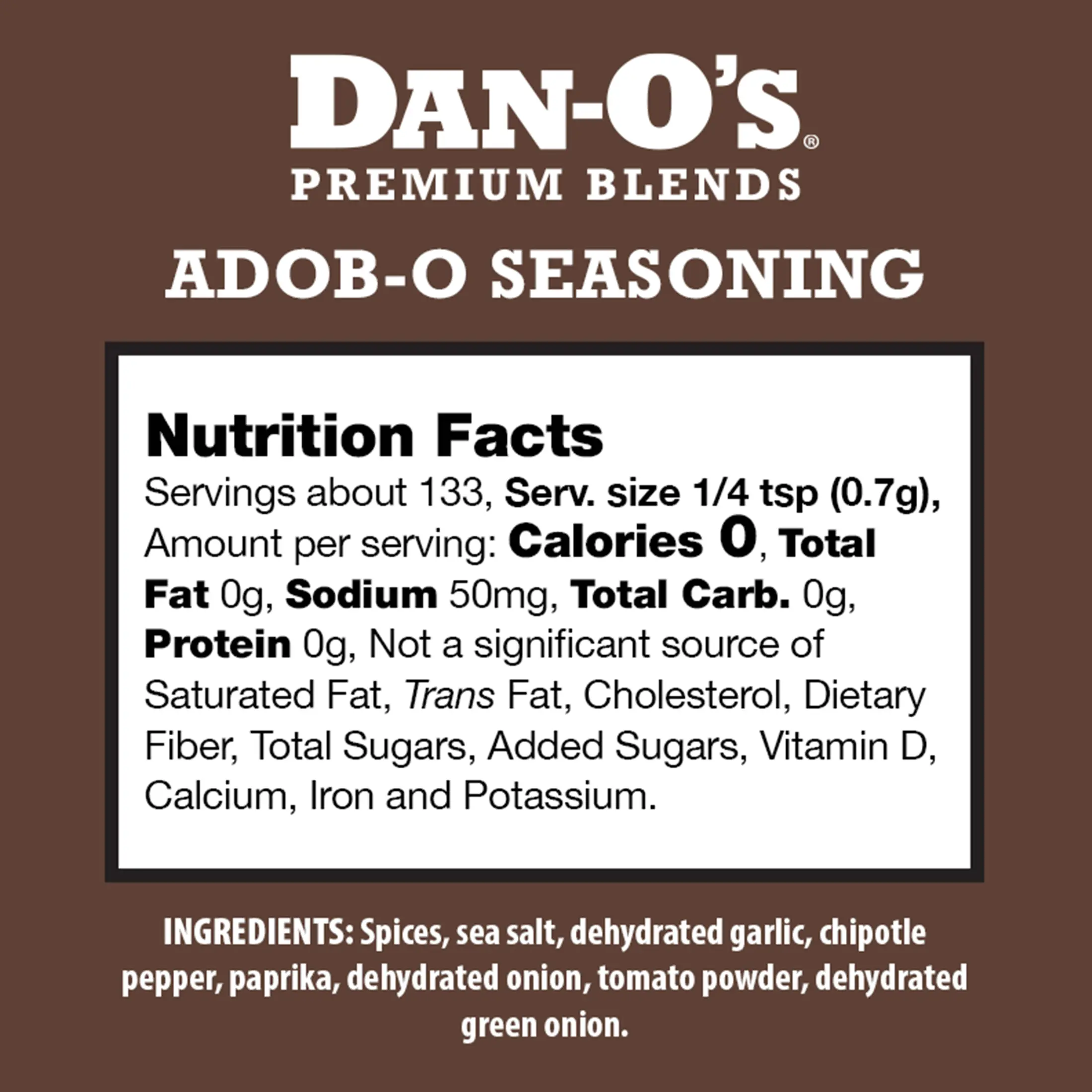 Dan-O’s Adob-O isn’t here to play nice. It’s here to fire up your food with bold, savory flavor and a Latin-inspired punch. Sprinkle it on whatever needs a wake-up call. It's straight-up flavor that hits every time. Spice level? Just enough to let your taste buds know who’s boss.