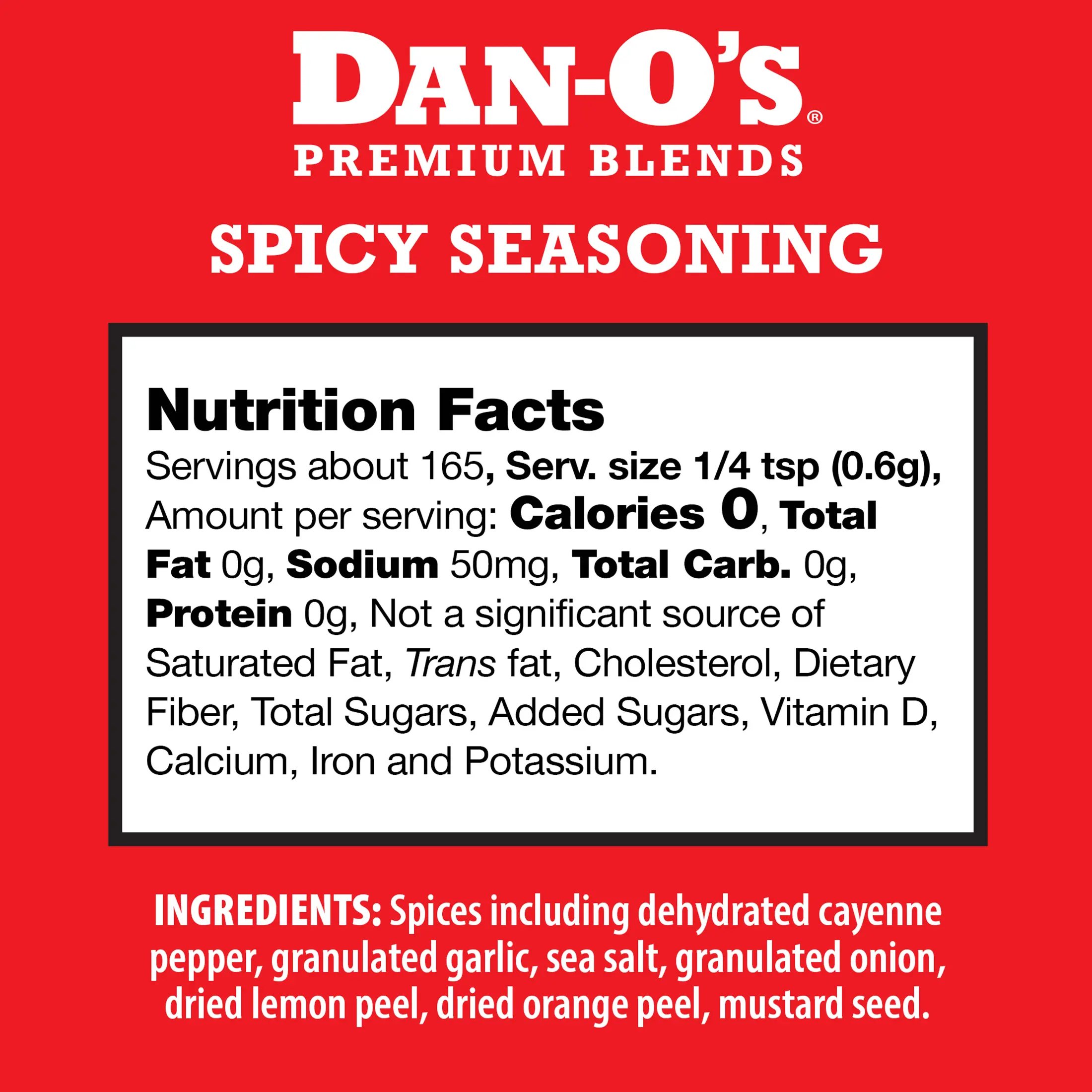Dan-O’s Spicy blends our Original savory blend with cayenne pepper for a little kick. Pop-Pop some Dan-O’s Spicy on your meals to give them just the right amount of heat without overwhelming your taste buds. Whether you’re cooking up a pot of chili, some chicken wings, or anything in between, Dan-O’s Spicy is sure to turn up the flavor and spice up your meals.