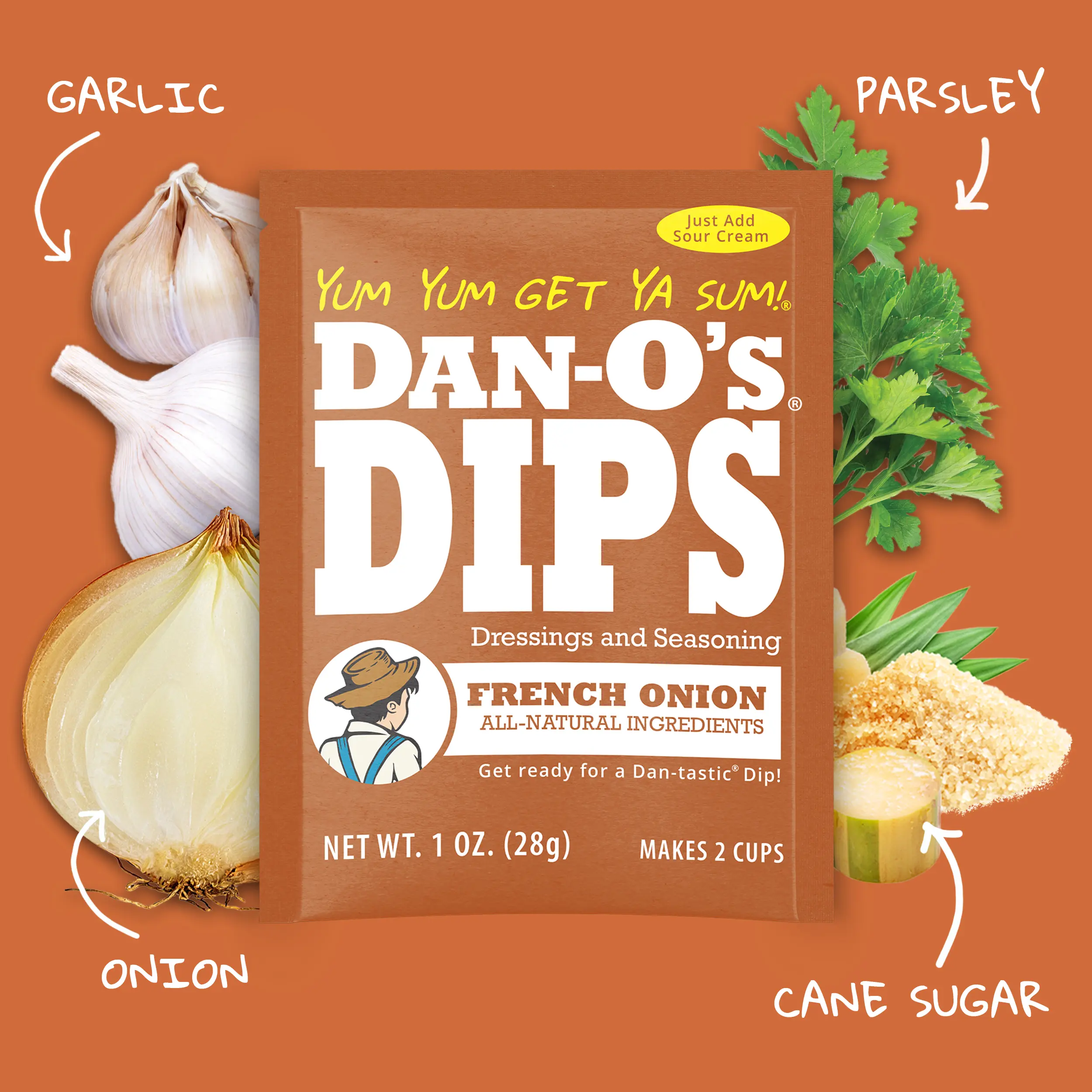 We took classic French Onion dip and ripped it with flavor. Sweet onion depth, roasted goodness, garlic punch, and a clean herb finish. No packets. No shortcuts. Just a dip that goes hard.All-natural, all-flavor, all Dan-O’s.