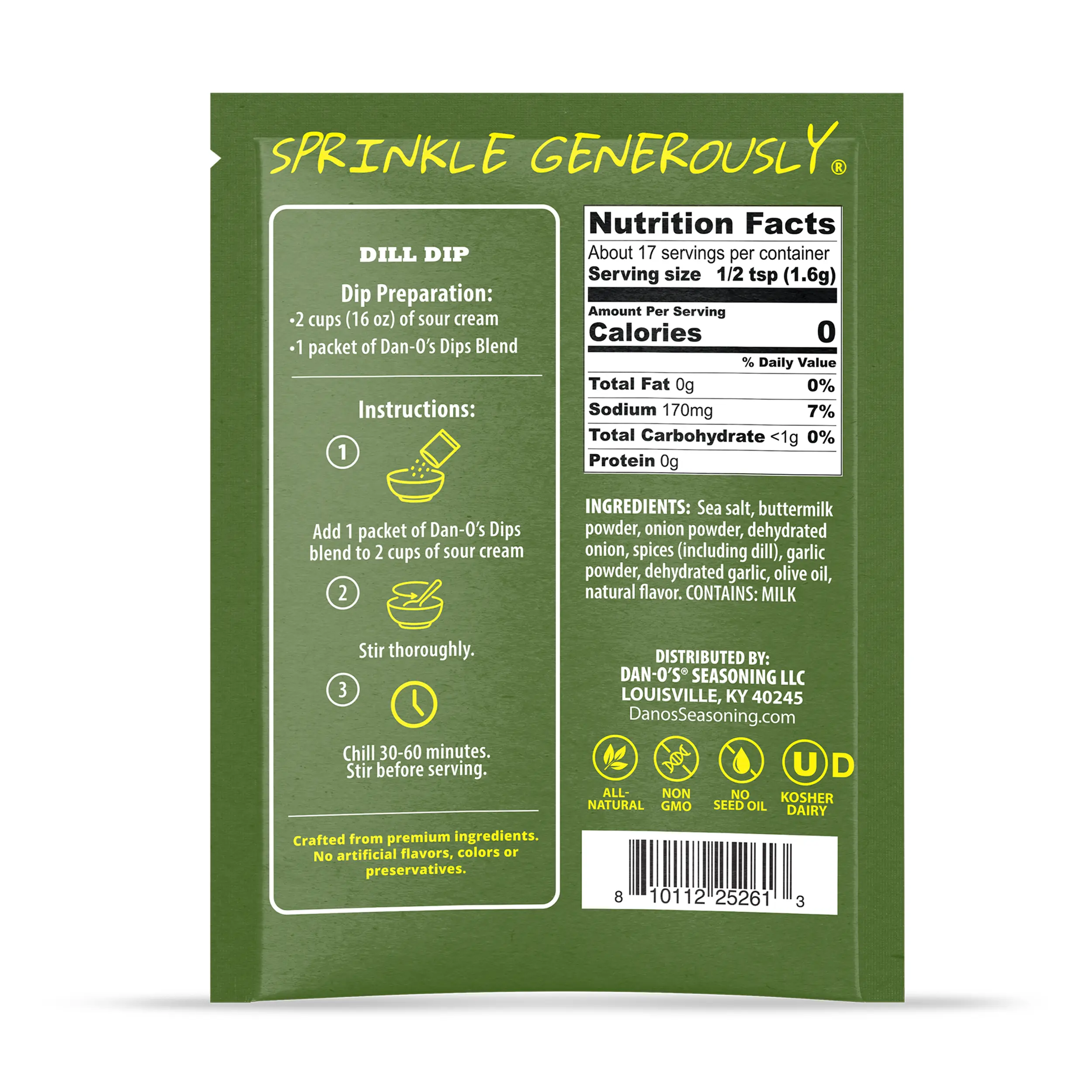 ·Dill-forward, chive-y, cool, herby. A creamy, savory blend with the tang of buttermilk, a bold pop of dill, alongside notes of garlic and onion.