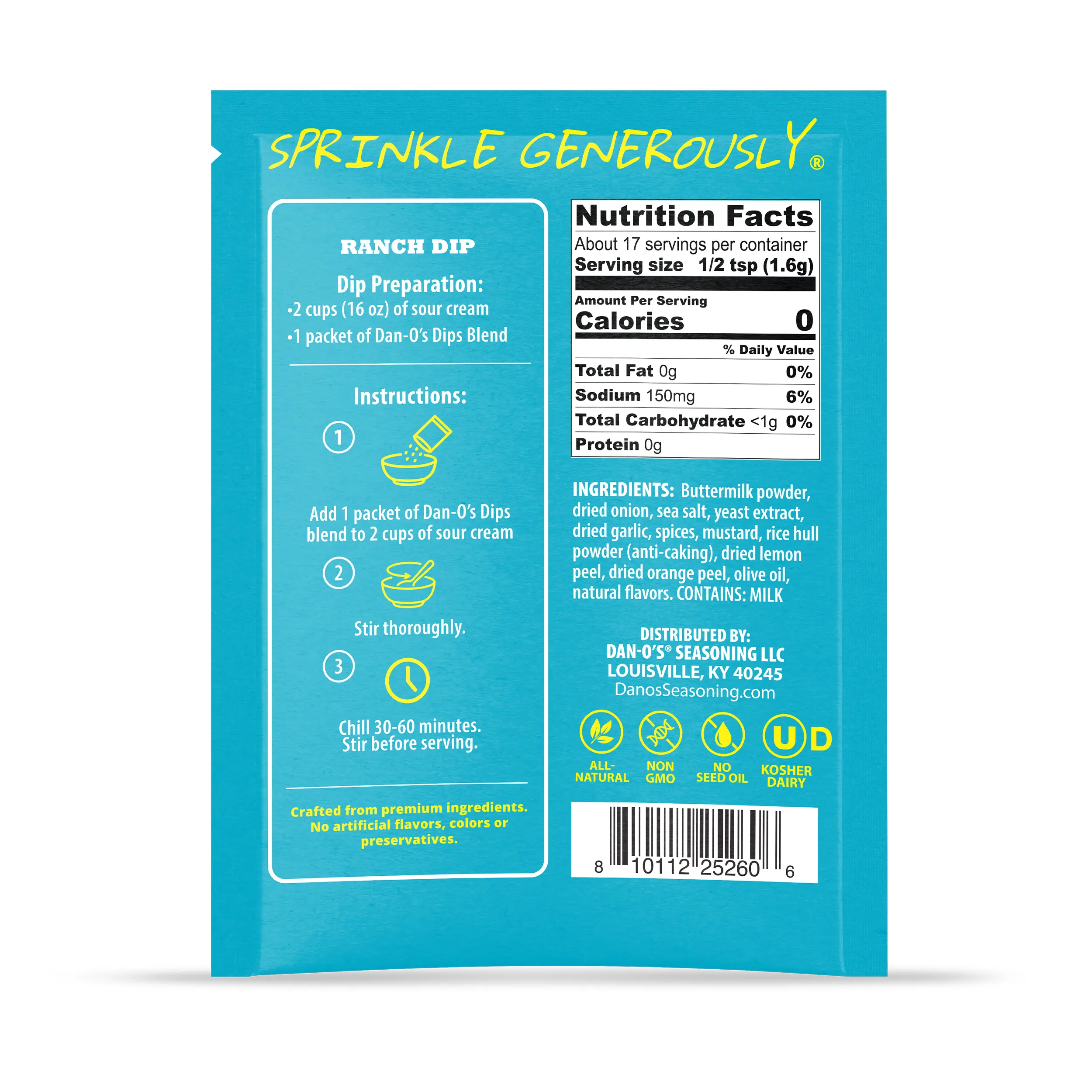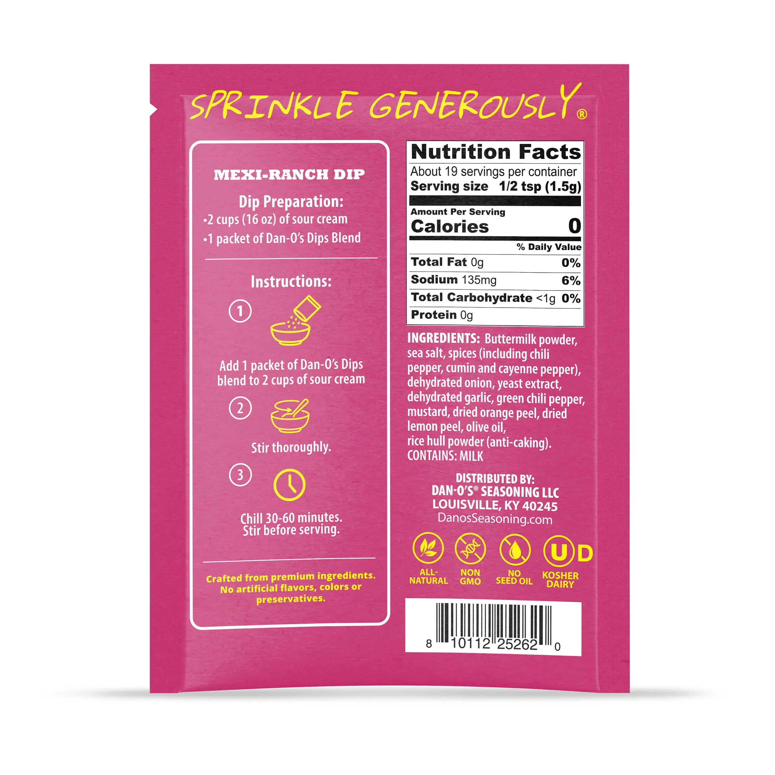 Turn up the fiesta! Dan-O’s Mexi-Ranch is where cool ranch and zesty Southwest flavors collide. Perfect for tacos, chips, or as a bold spread—just add, mix, and let the good times roll. No artificial anything, just a packet of pure, Dantastic flavor!