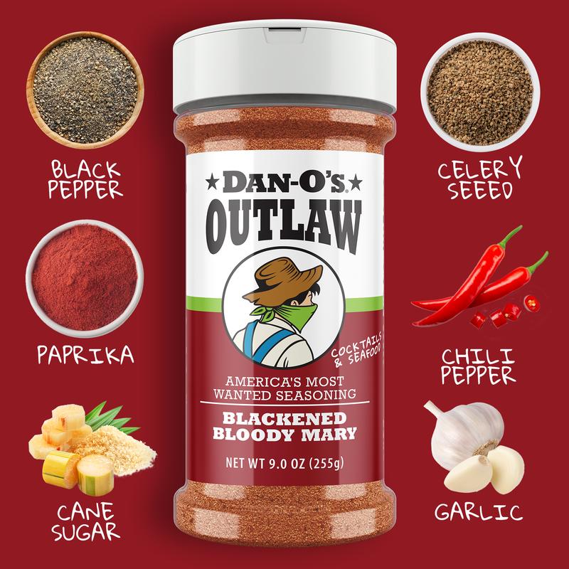 5. Dan-O's Outlaw Blackened Bloody Mary Seasoning - America's Most Wanted Seasoning for Seafood, Cocktails & More - 9 oz Bottle