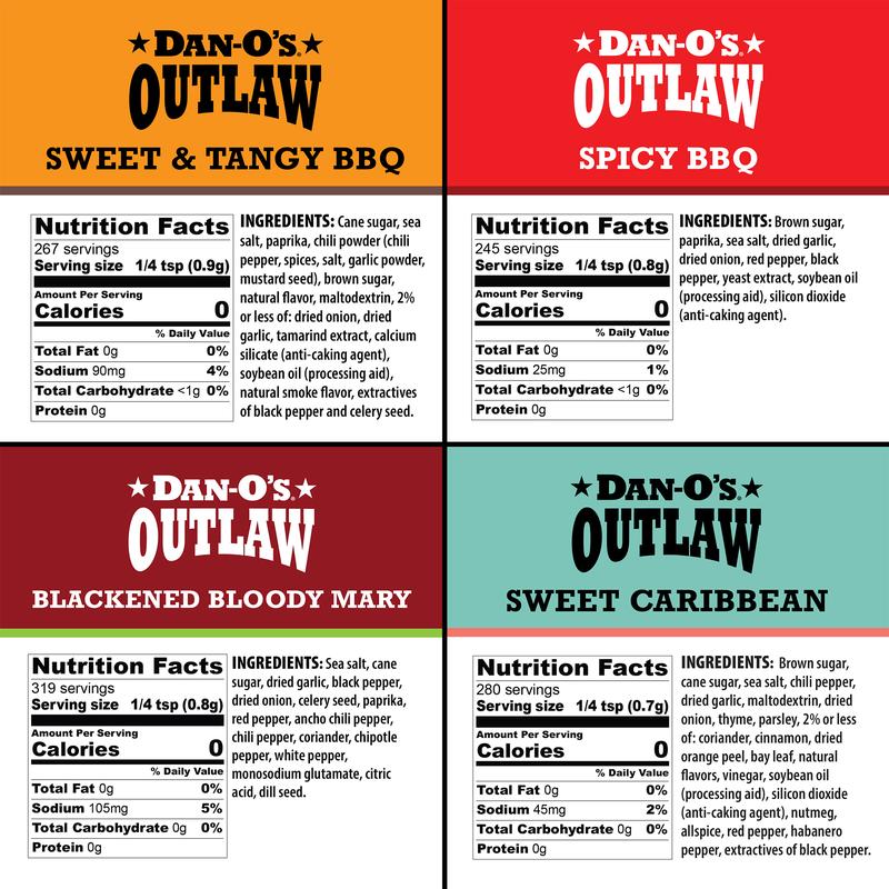 ·Dan-O’s Outlaw Sweet Caribbean is bursting with island-inspired flavors. It’s a balance of sweet, tangy, and spicy. From the warmth of habanero to the zest of orange peel, this blend transforms every dish into a Caribbean adventure. Sprinkle on the Dantastic and feel the vibe!