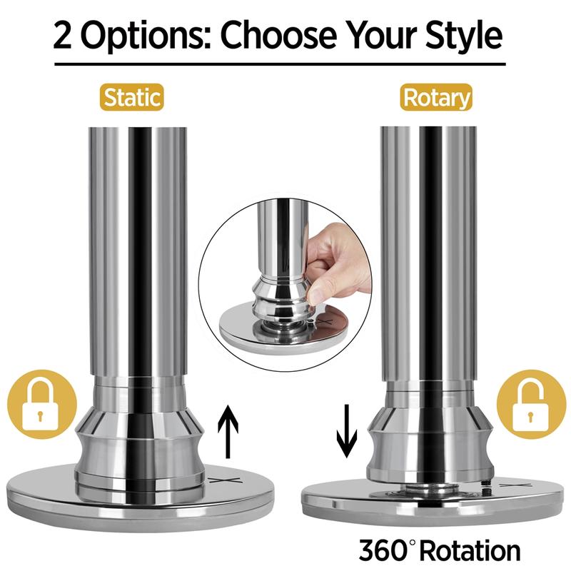 4.【Two modes for greater versatility】This 45 mm dance pole has both spinning and static modes for beginners and professionals. To switch between modes, align the adjustment hole with the "X" mark on the base and use a hex key to tighten or loosen the pole