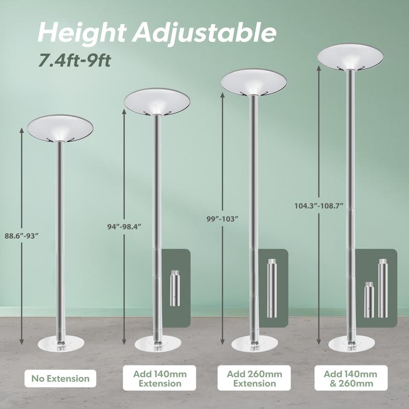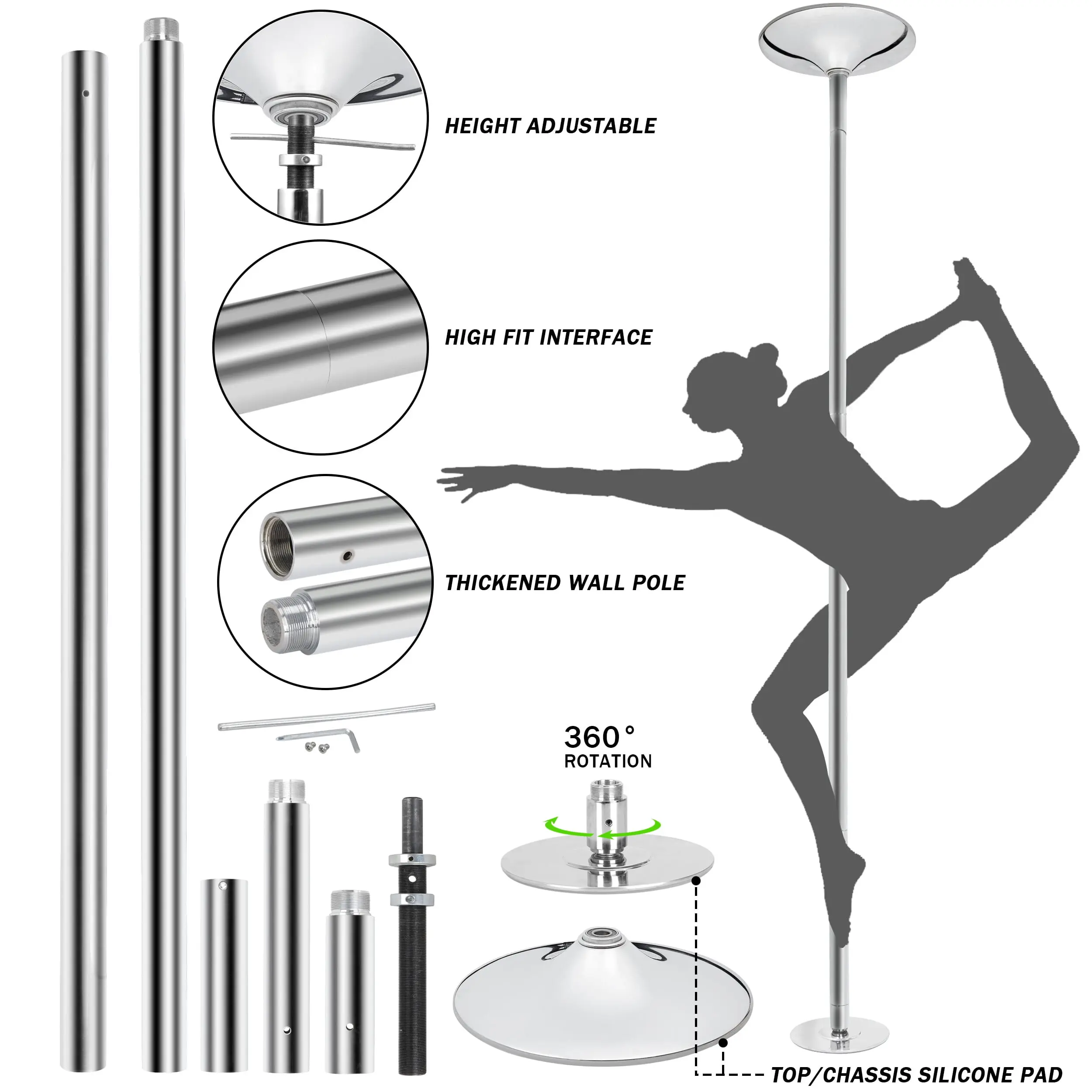 Can be adjusted from 7.4' to 9' to accommodate for different rooms with carpet or popcorn ceilings, and comes with 1x 140mm dance pole extension and 1x 254mm Extension.