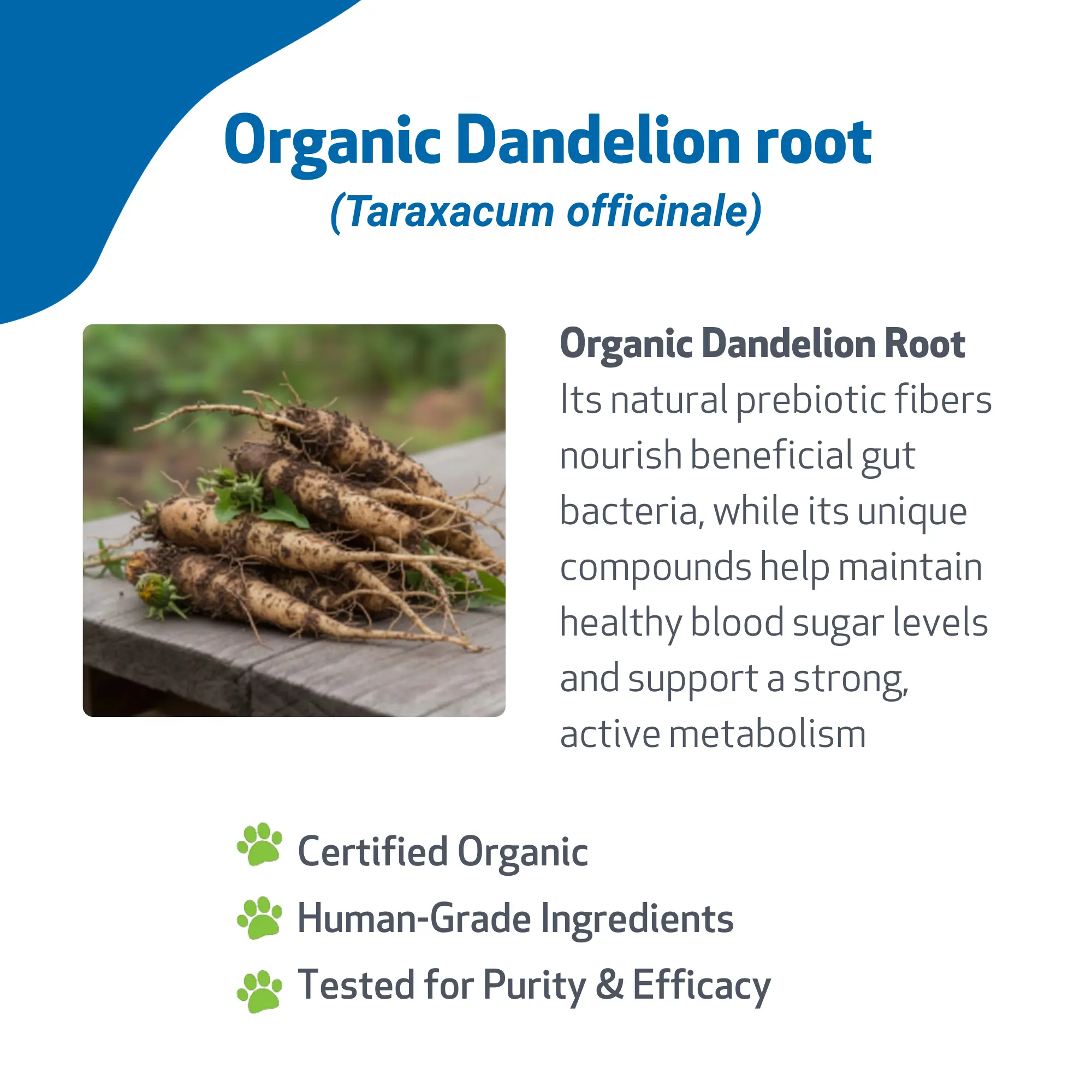 Blood Sugar Balance: Studies have shown that Dandelion Root can support normal insulin levels, making it a beneficial herb for maintaining stable blood sugar in cats.