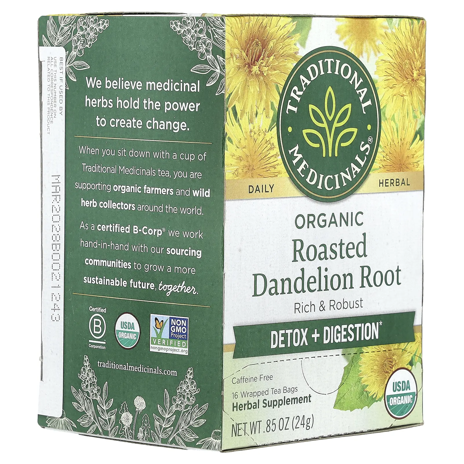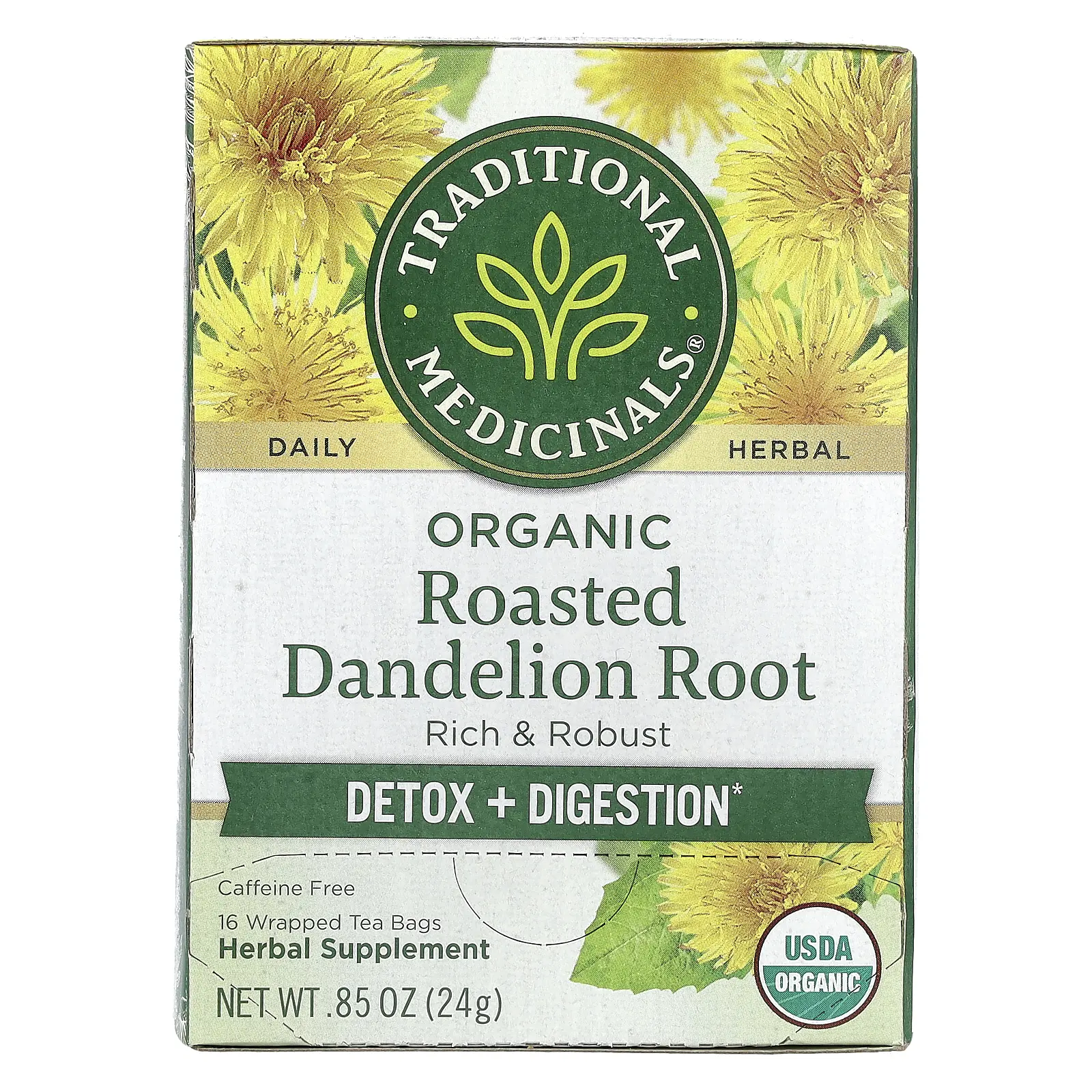 5. Traditional Medicinals Organic Roasted Dandelion Root, Caffeine Free, 16 Wrapped Tea Bags, 0.85 oz (24 g)