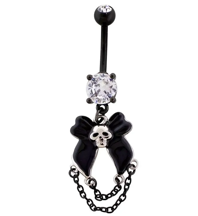 5. Black PVD Death Bow Dangle Chain Stainless Steel Belly Button Ring