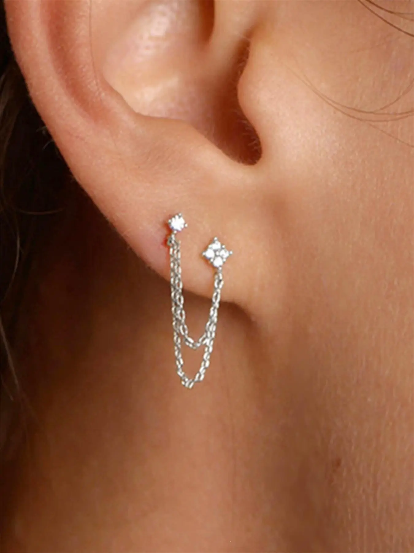 don’t get unless ur planning to put it in ur third earring hole, it’s not cute with just the 2 bc the chain is too long it’s just a jumble