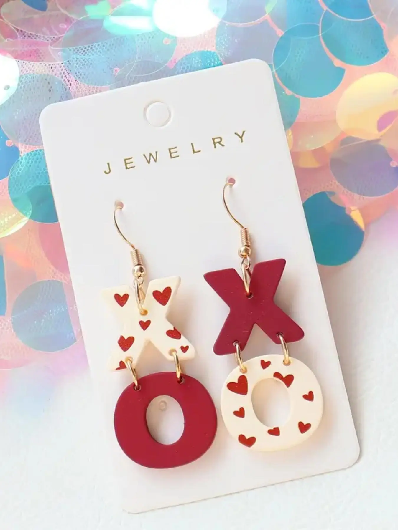 I recently got these vibrant X and O shaped heart print acrylic dangle earrings, and they have quickly become a favorite! Their playful design adds a cheerful touch to any outfit, and they are so lightweight that I barely notice I’m wearing them.