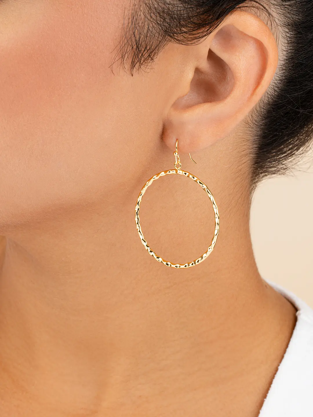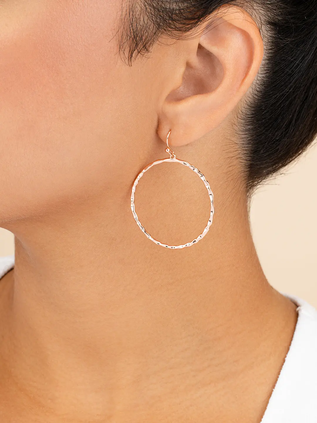 Every woman could use another pair of hoop earrings! This unique pair of dangle earrings are available in gold, rose gold, and silver, meaning that you can choose the perfect shade to match your style or your favorite outfit. Or buy them all -- it's hard to resist!
