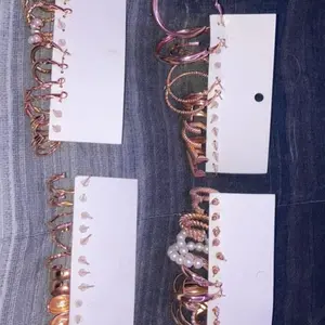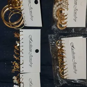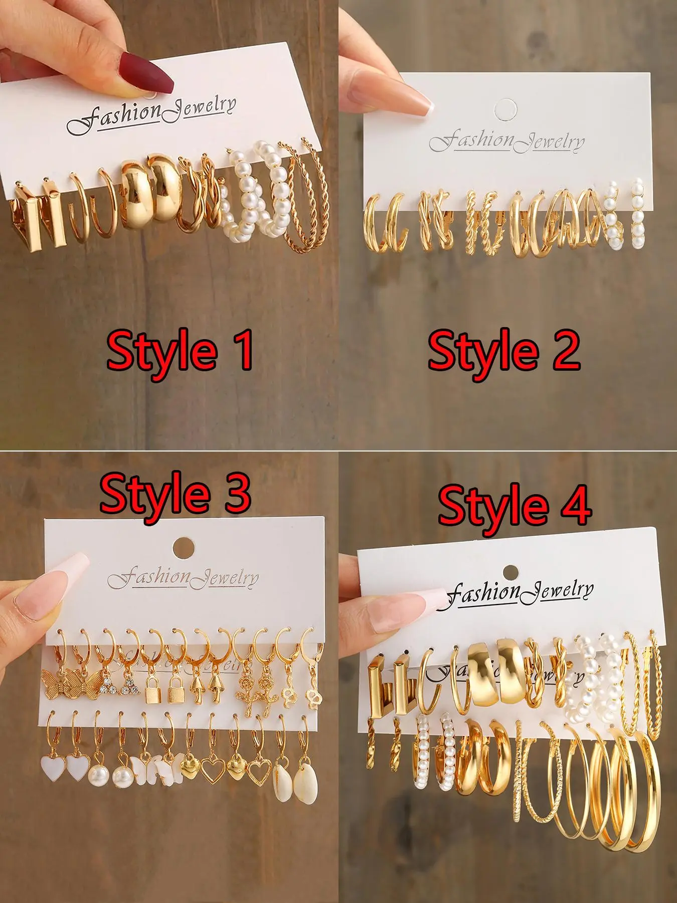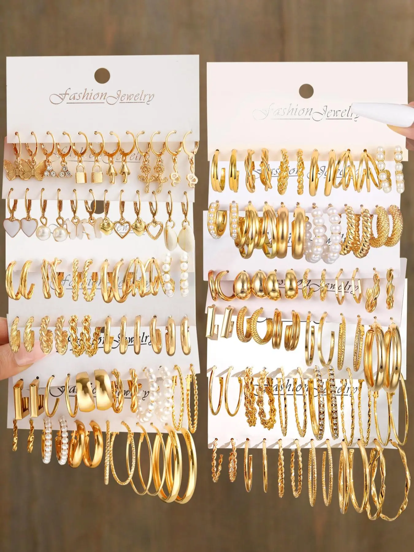 ćUnique Setć: This remarkable set includes dangle and hoop earrings, adorned with faux pearls, rhinestones, and a miscellany of designs like butterflies and hearts.
