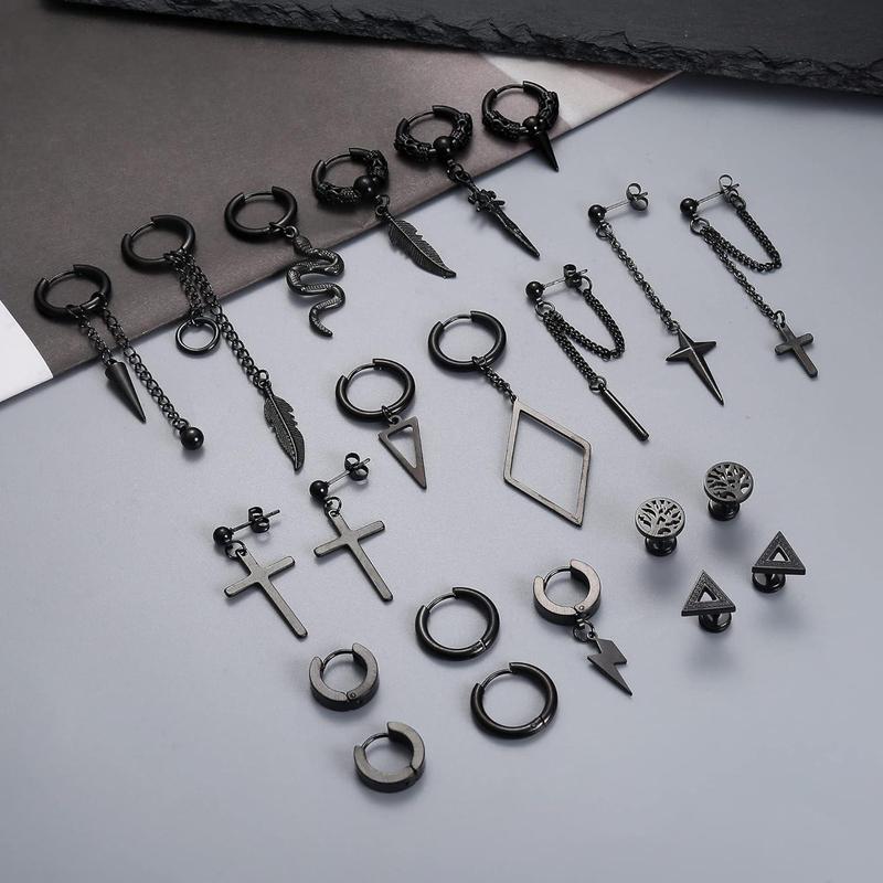 ·Stylish and trendy design: The FLORIDECO 22 Pcs Dangle Earrings for Men feature a variety of stylish designs including hinged huggie hoops, punk long chains, stud snake feathers, and sword dangles. These earrings are perfect for men who want to make a fashion statement.