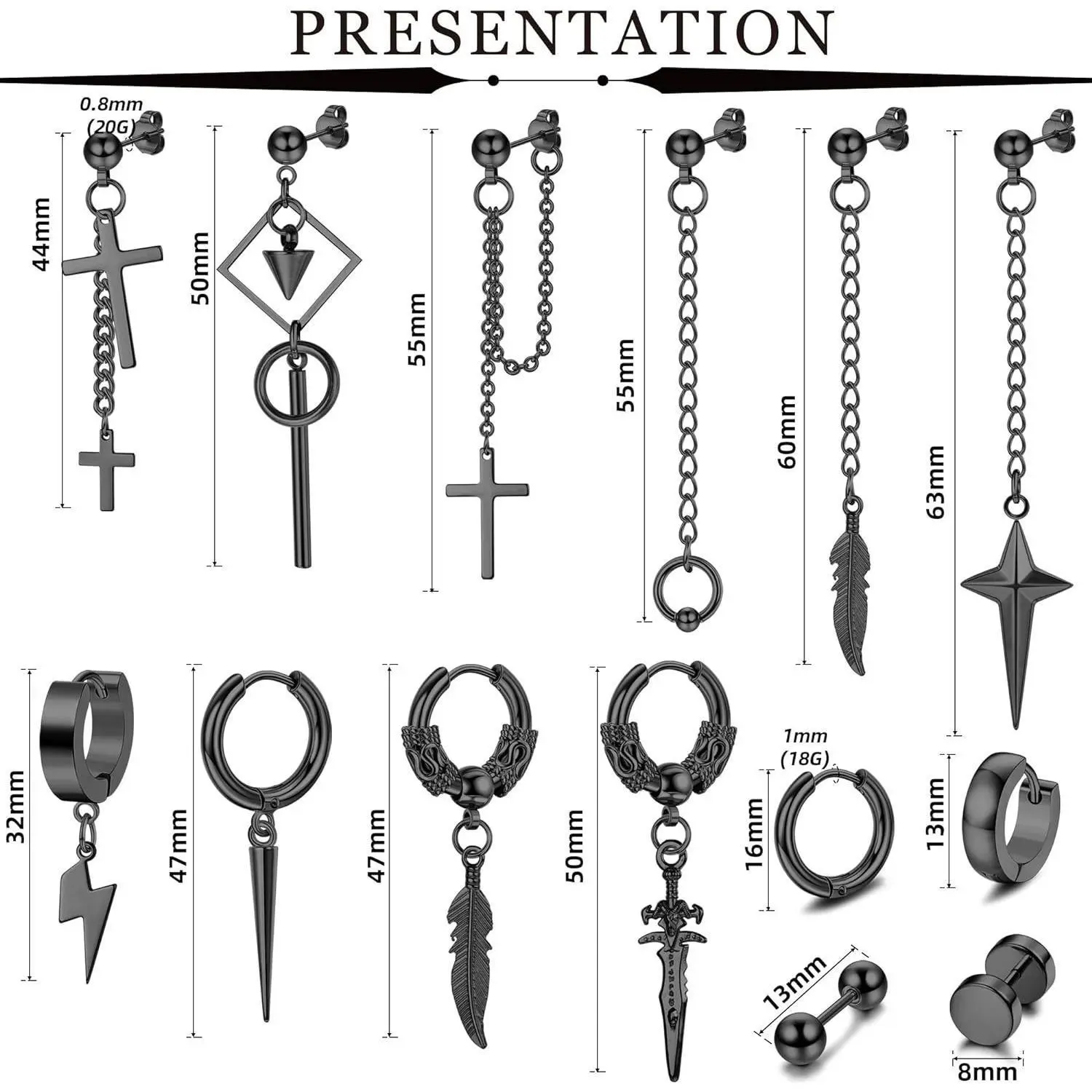 CROSS DANGLE EARRINGS SIZE--These Hoop Dangle Earrings Come In Different Sizes, Hoop Earrings Bar 18 Gauge=1.0mm, Stud Earrings Bar Guage:0.8mm(20g). And Other Size Details Have Been Marked In Size Pictures. Perfect Size, Suitable For Most People.