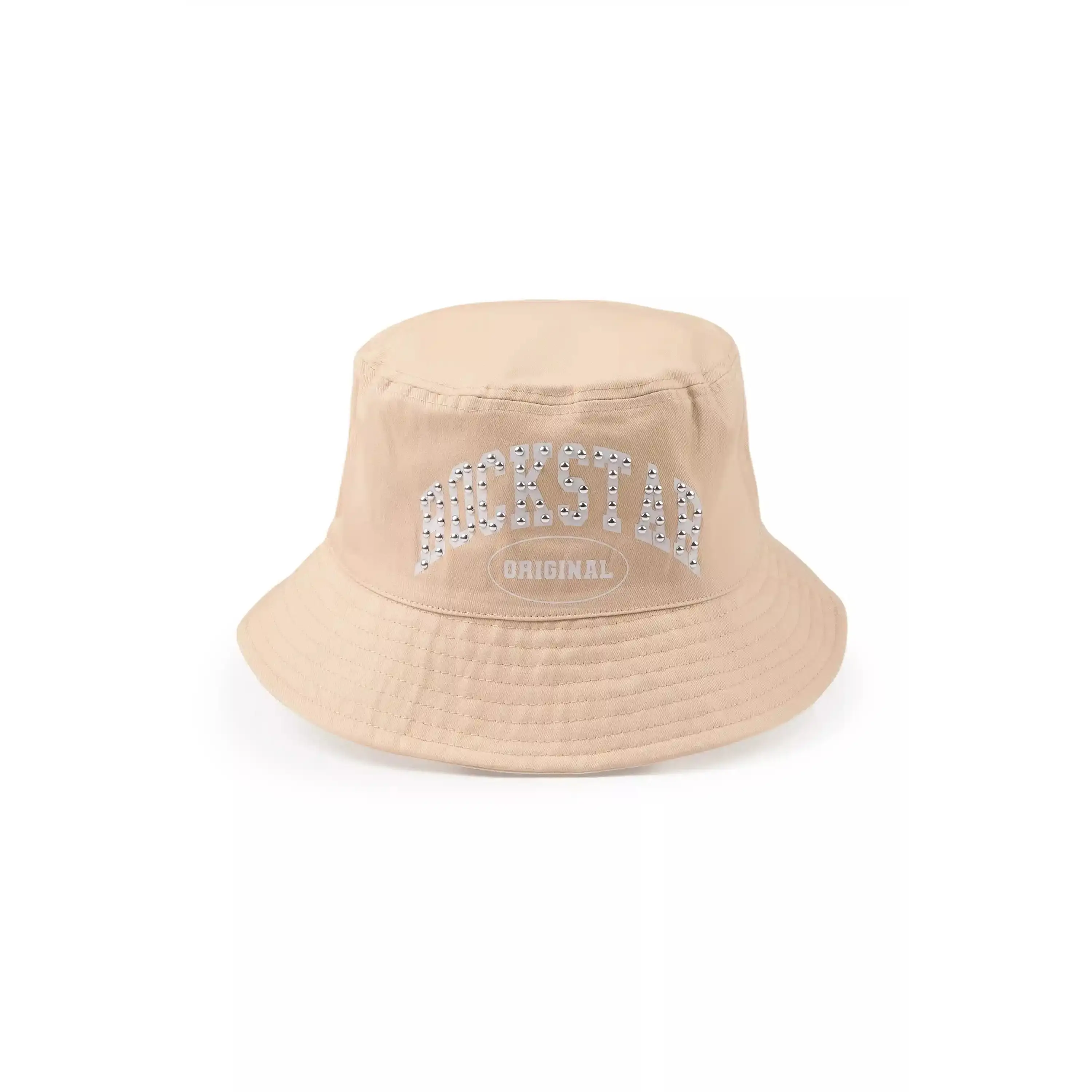 5. Danil Beige Rhinestone Graphic Bucket Hat