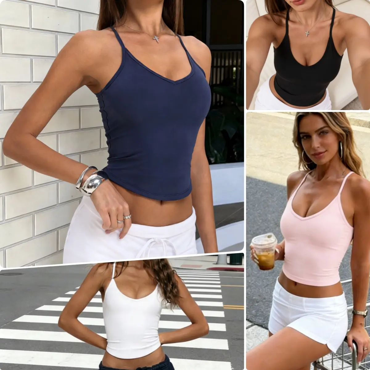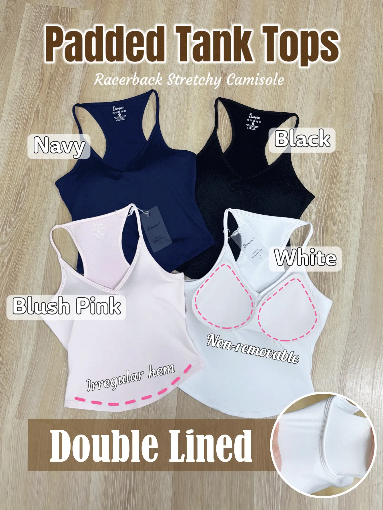 【Sewn-in Padded & Seamless】Built-in fixed pads, no bra needed. Soft, wireless, seamless, and supportive.