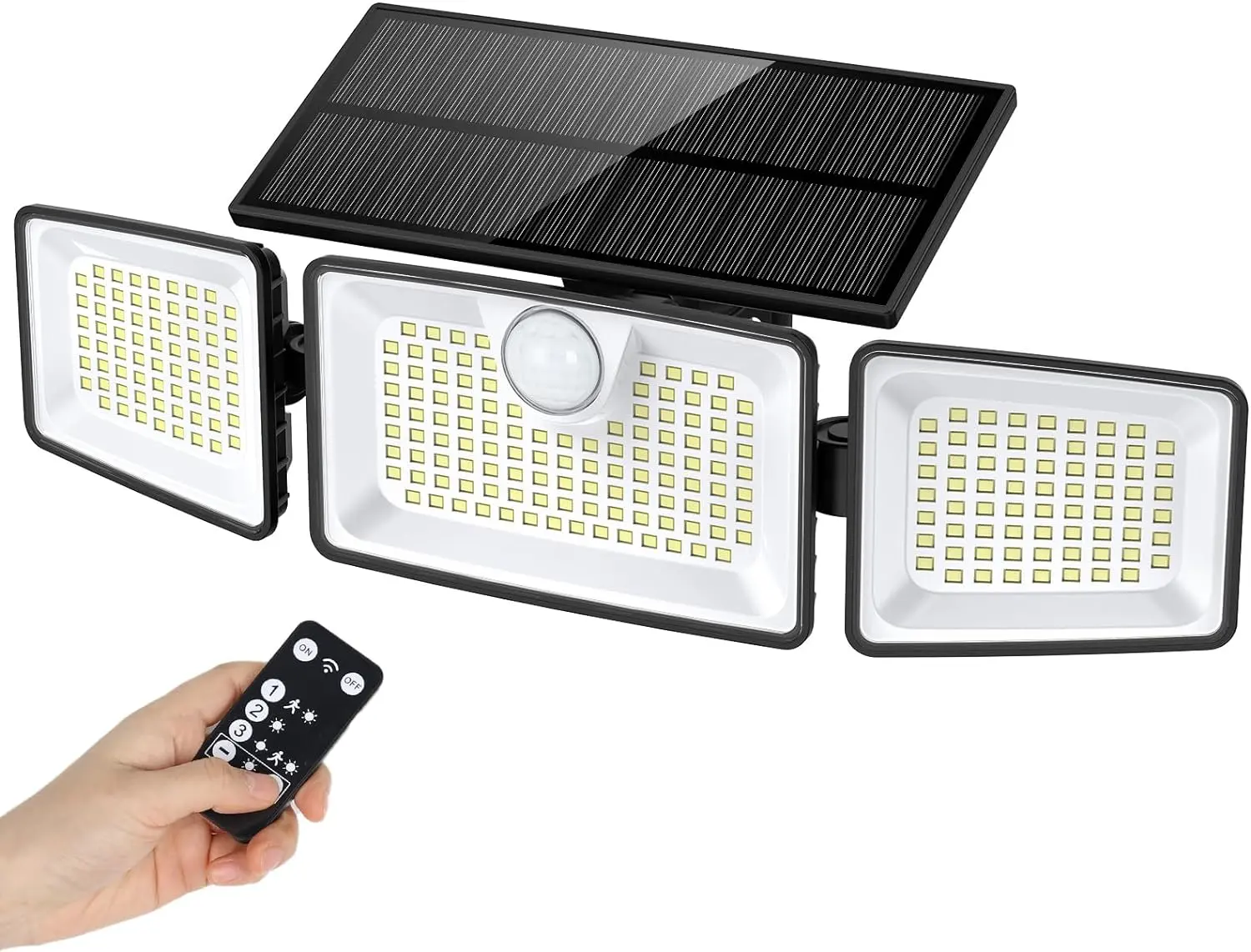 ·【Larger Size 3 Heads Motion Sensor Lights】The size of the solar light is 13.83in*4.32in. The solar panel can be adjusted independently of 90°, the left and right side of the lights can be rotated up and down 180°, the rotation can be rotated up to 155°, the illumination angle can be up to 355°. AI motion sensor can detect movement within a maximum of 40 feet,which can provide higher brightness and further regions.