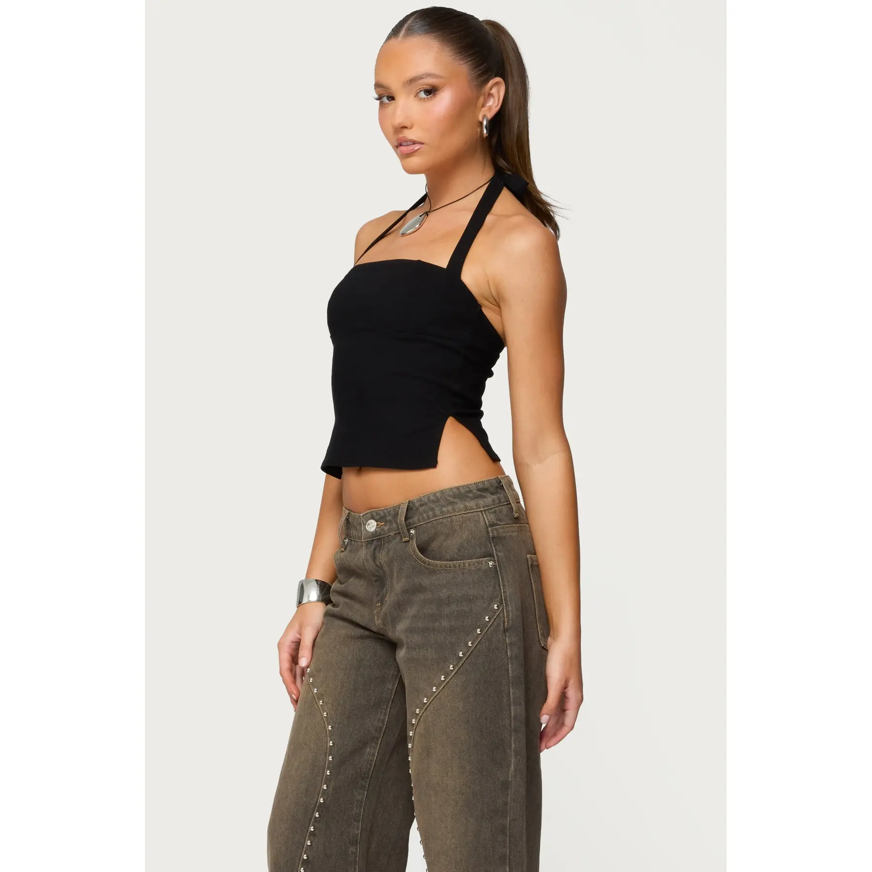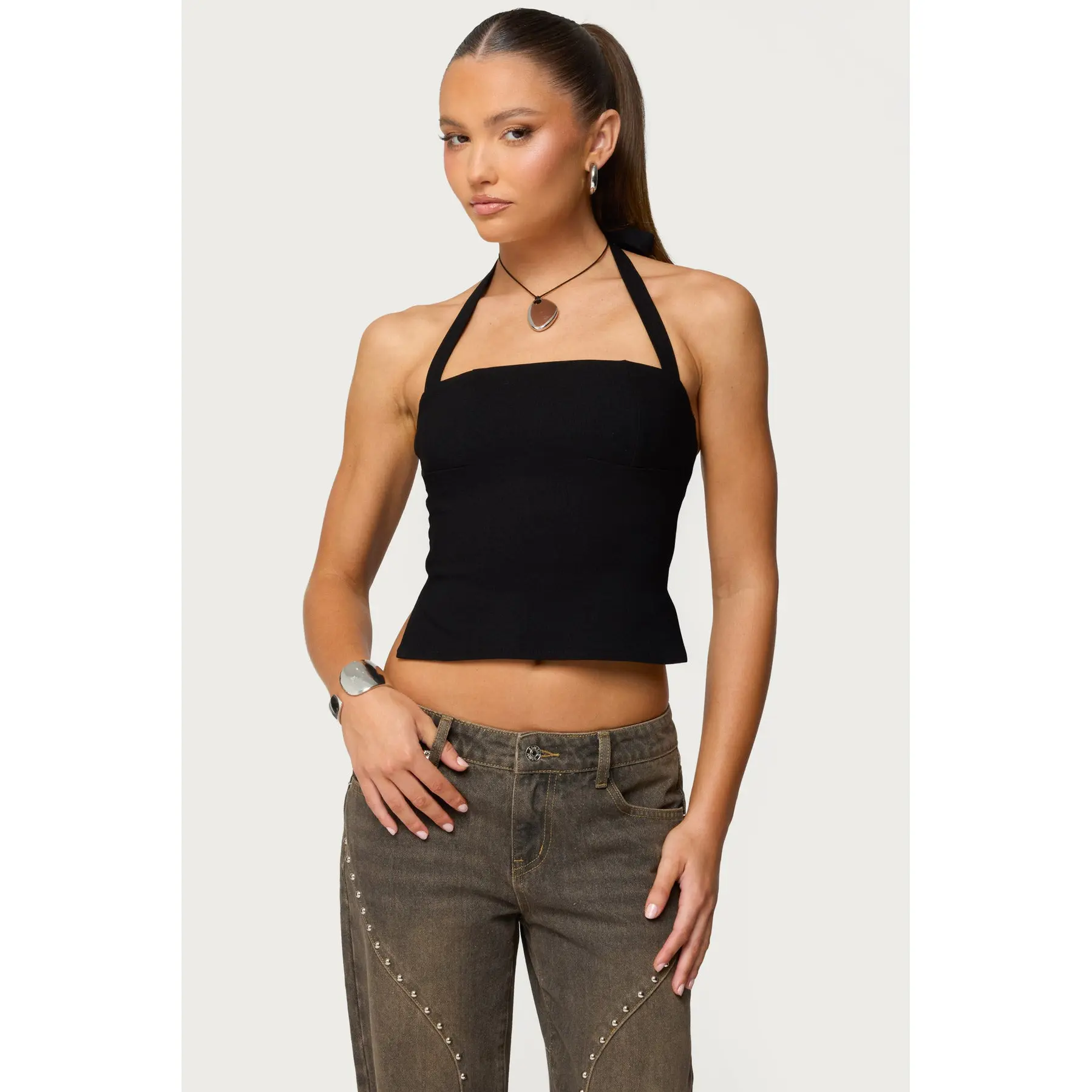 obsessed with this top!! 🖤 wearing size small #haltertop #edikted #tanktop #cutetops