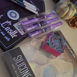 This is incredible! My daughter wanted to tear through the package as soon as it came in which is why the products are open lol, but this is such good quality makeup (especially the pigments in the Dark Castle palette). Thanks for the freebies and 3 glosses?! I only expected 1 mood changer gloss 🤩