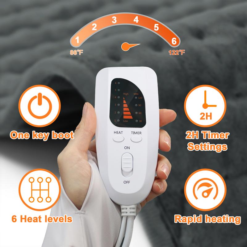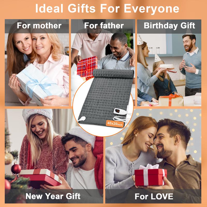 Dark Gray Heating pad, size 40in×20in, 33in×17in, 24in×12in, 6 temperature levels and 4 time settings, portable, back, neck, shoulders and legs heating, machine washable, perfect holiday gift for men, women, parents, Christmas gift