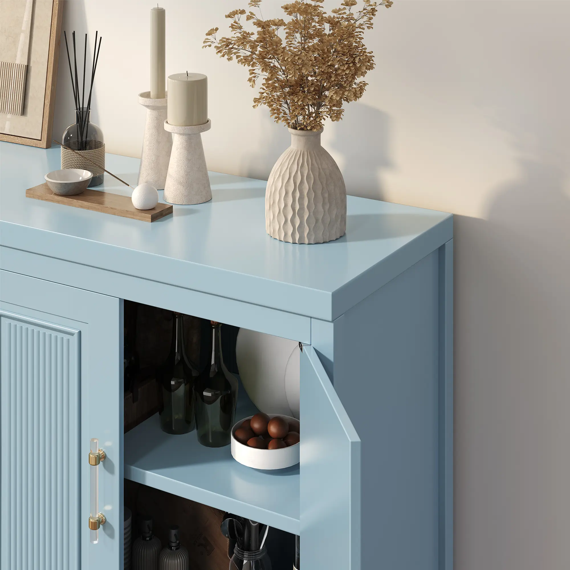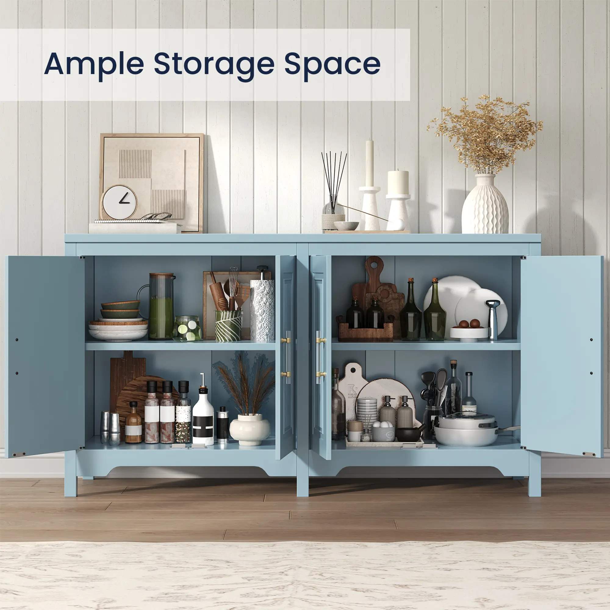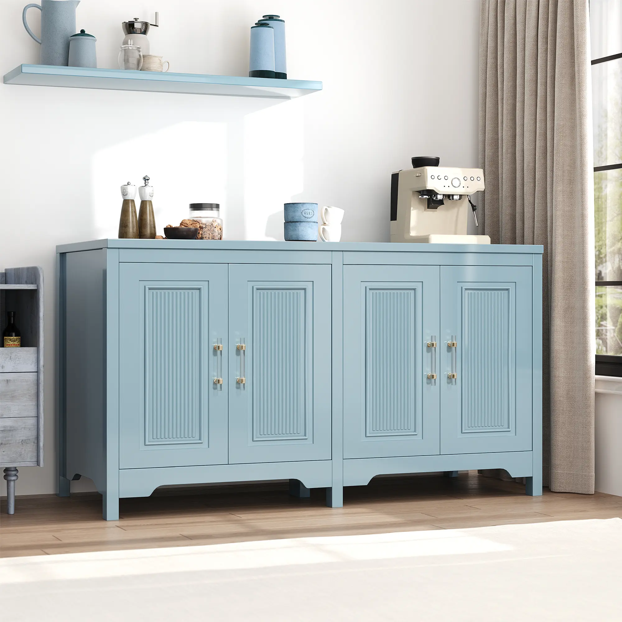 5. JocoevolBuffet Cabinet with Storage, 55" Blue Kitchen Storage Cabinet with Shelves, Modern Farmhouse Coffee Bar Station for Dining Room, Kitchen Buffet, Slate Blue